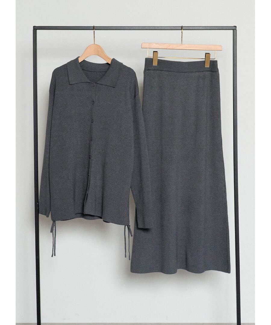 リブニットサイドドロストカーディガン×ロングスカートセットアップ【s-40039】.
