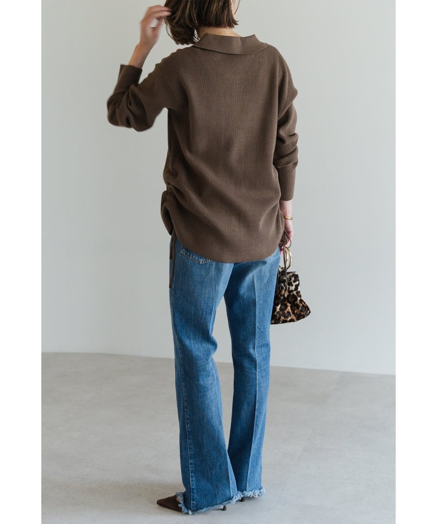 脇部分にはドロスト仕様を取り入れ、シルエットに変化をプラスしてくれます。
