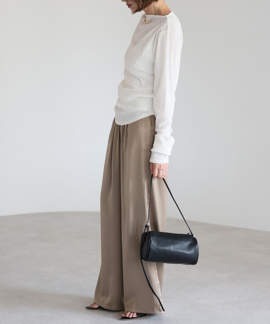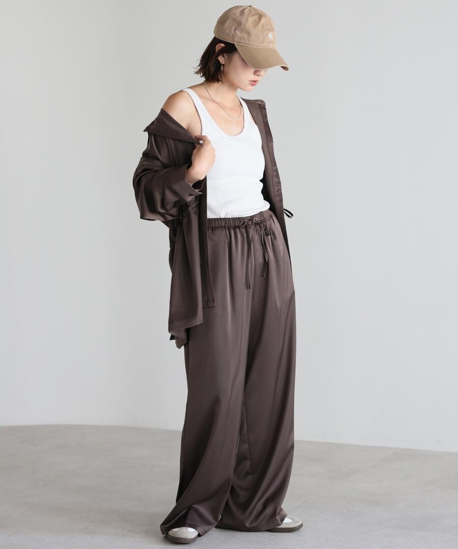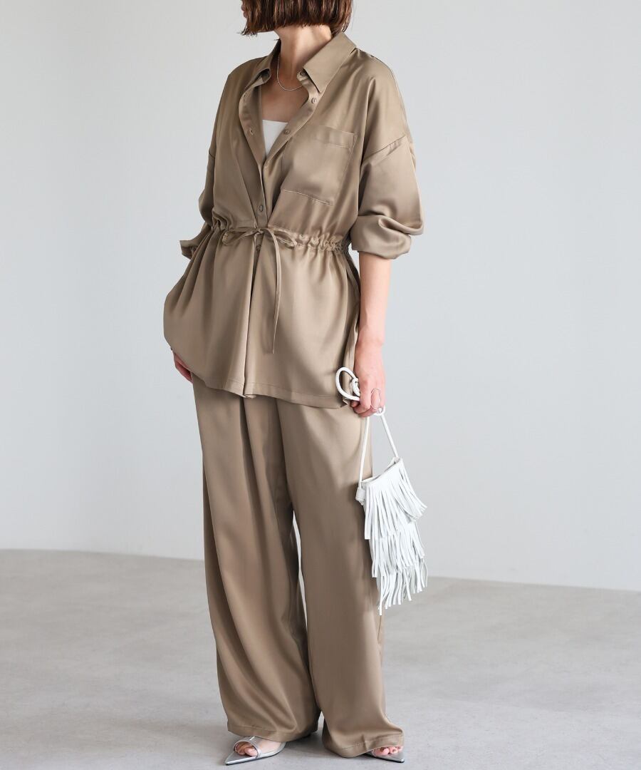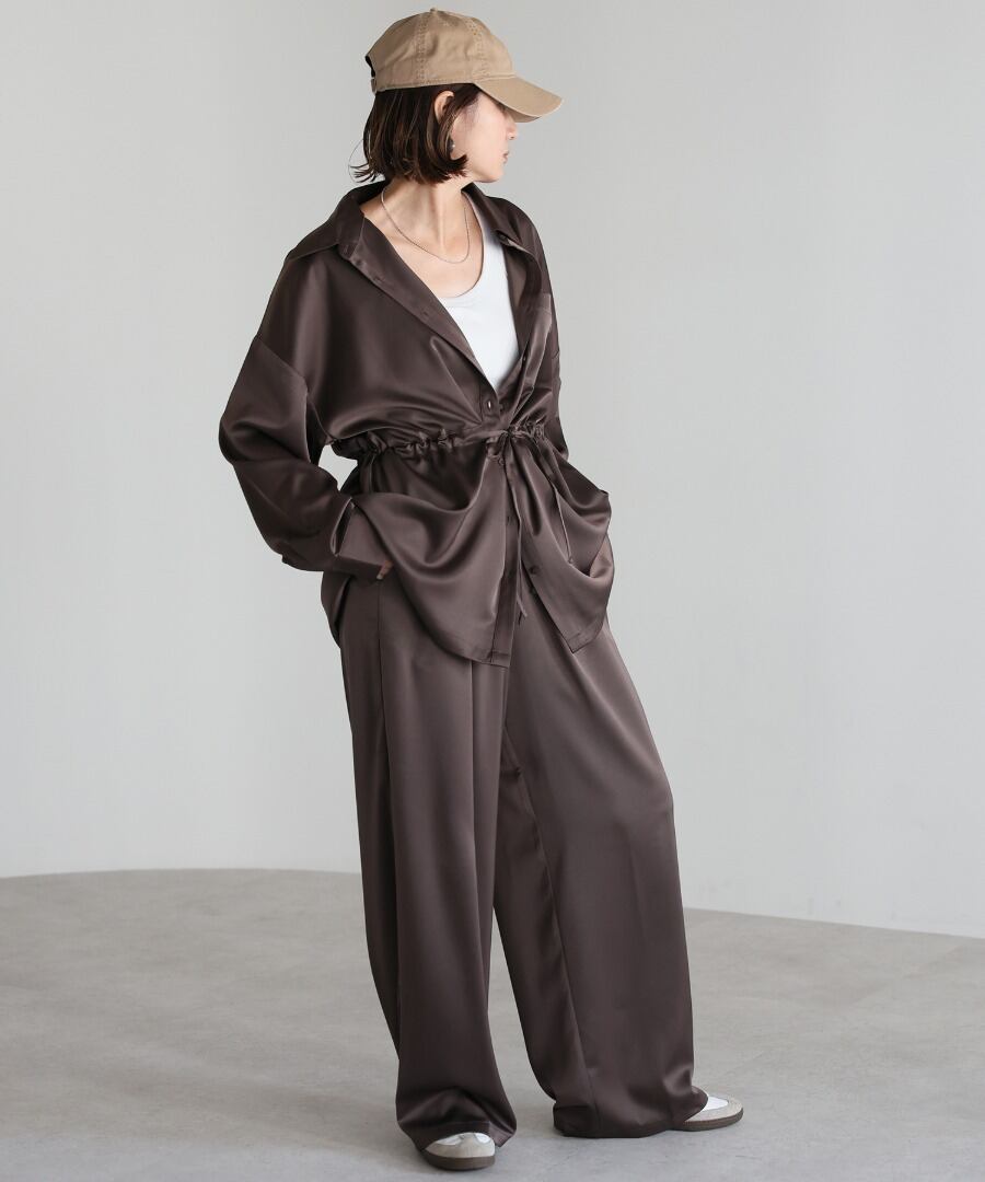 ※同素材のウエストドロストサテンシャツと合わせていただくと、セットアップコーデがお楽しみいただけます。