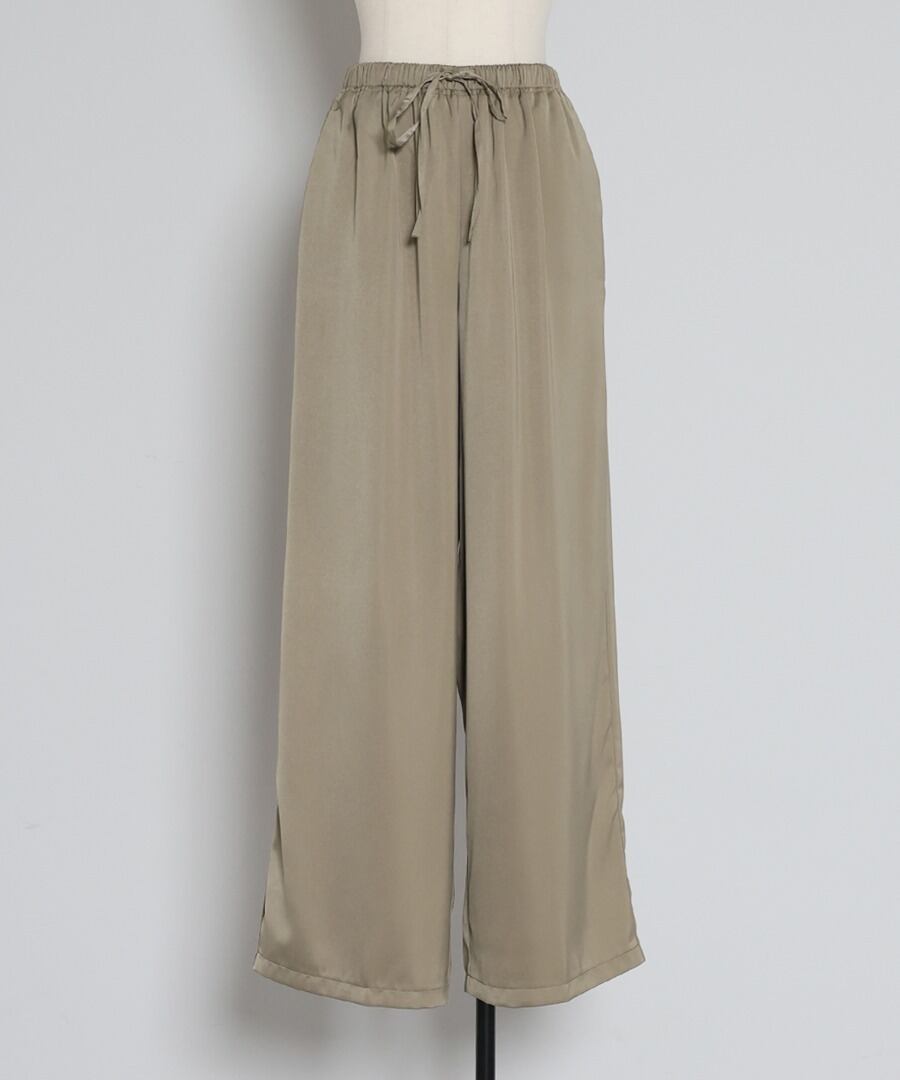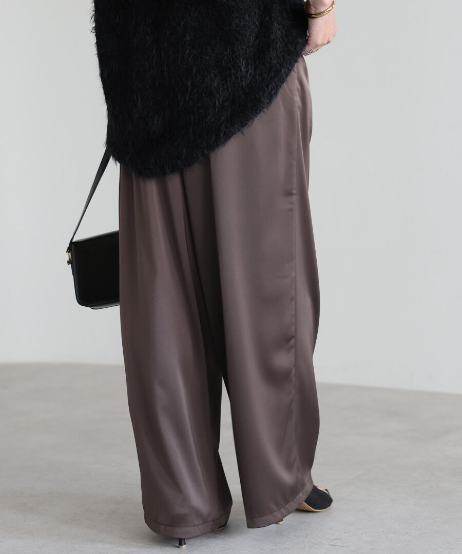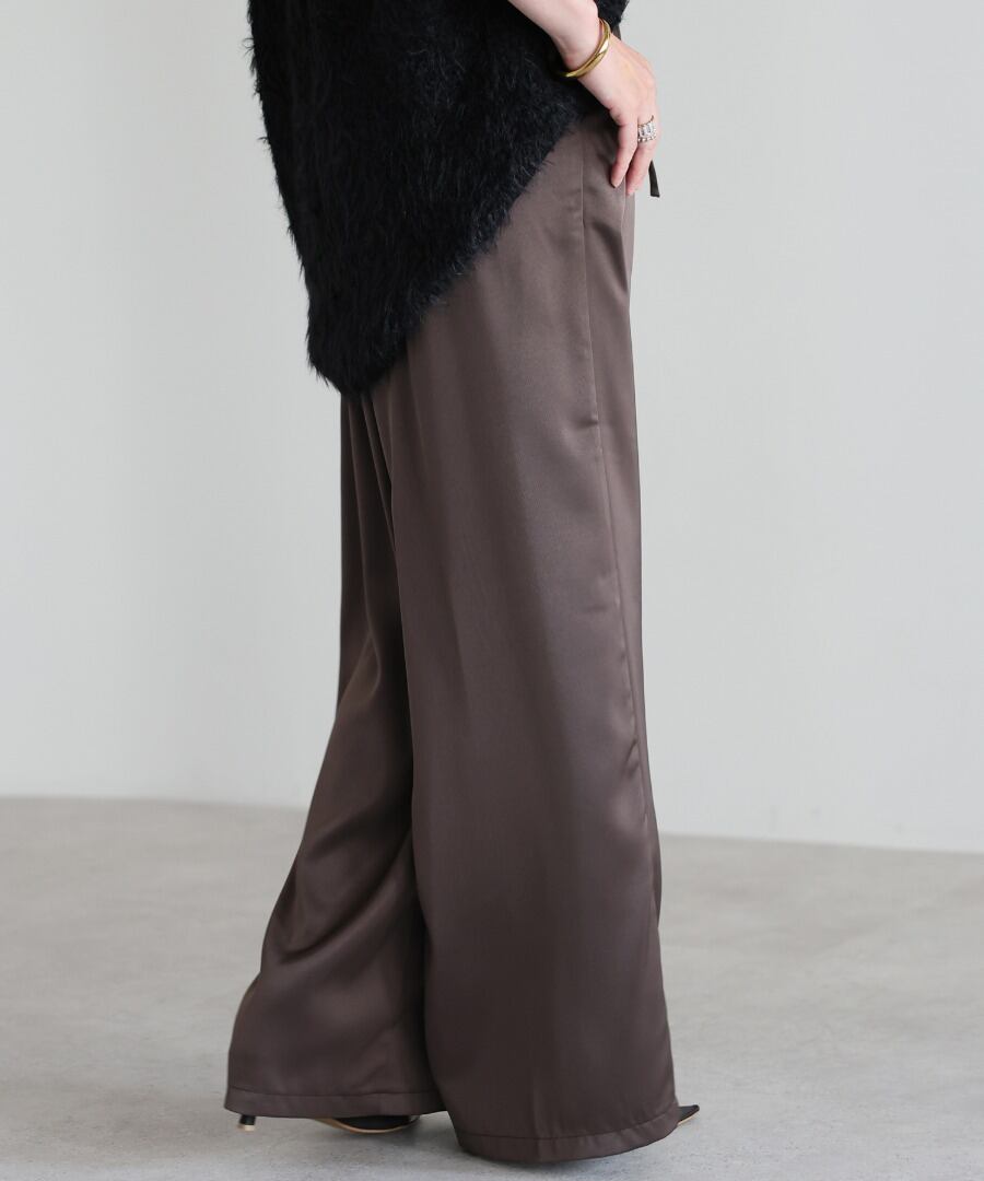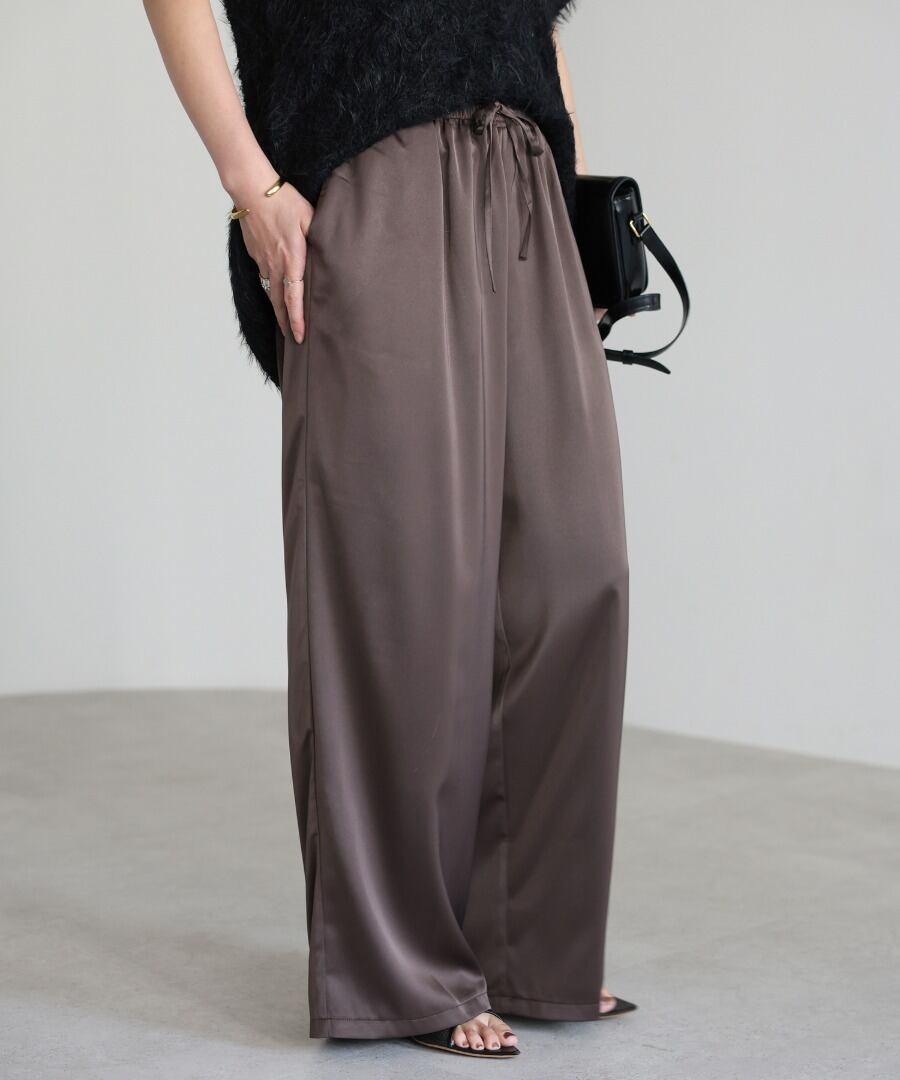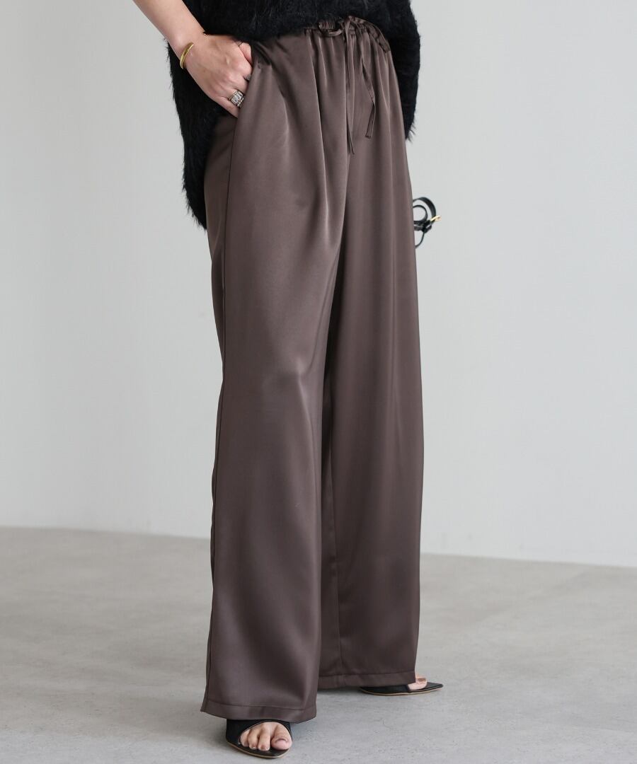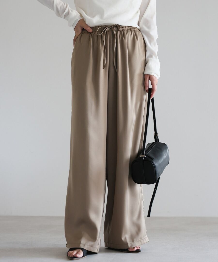柔らかな落ち感と上品な光沢を併せ持つサテン素材を使用したイージーパンツ。