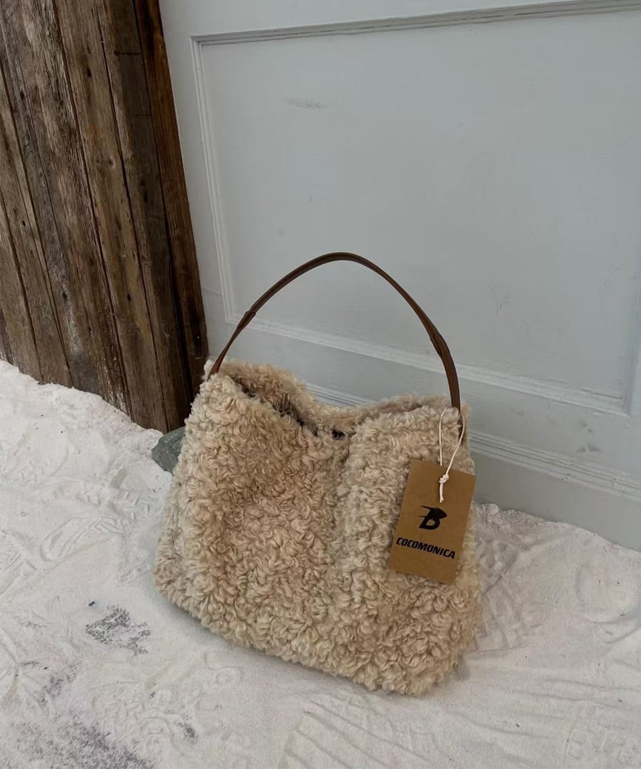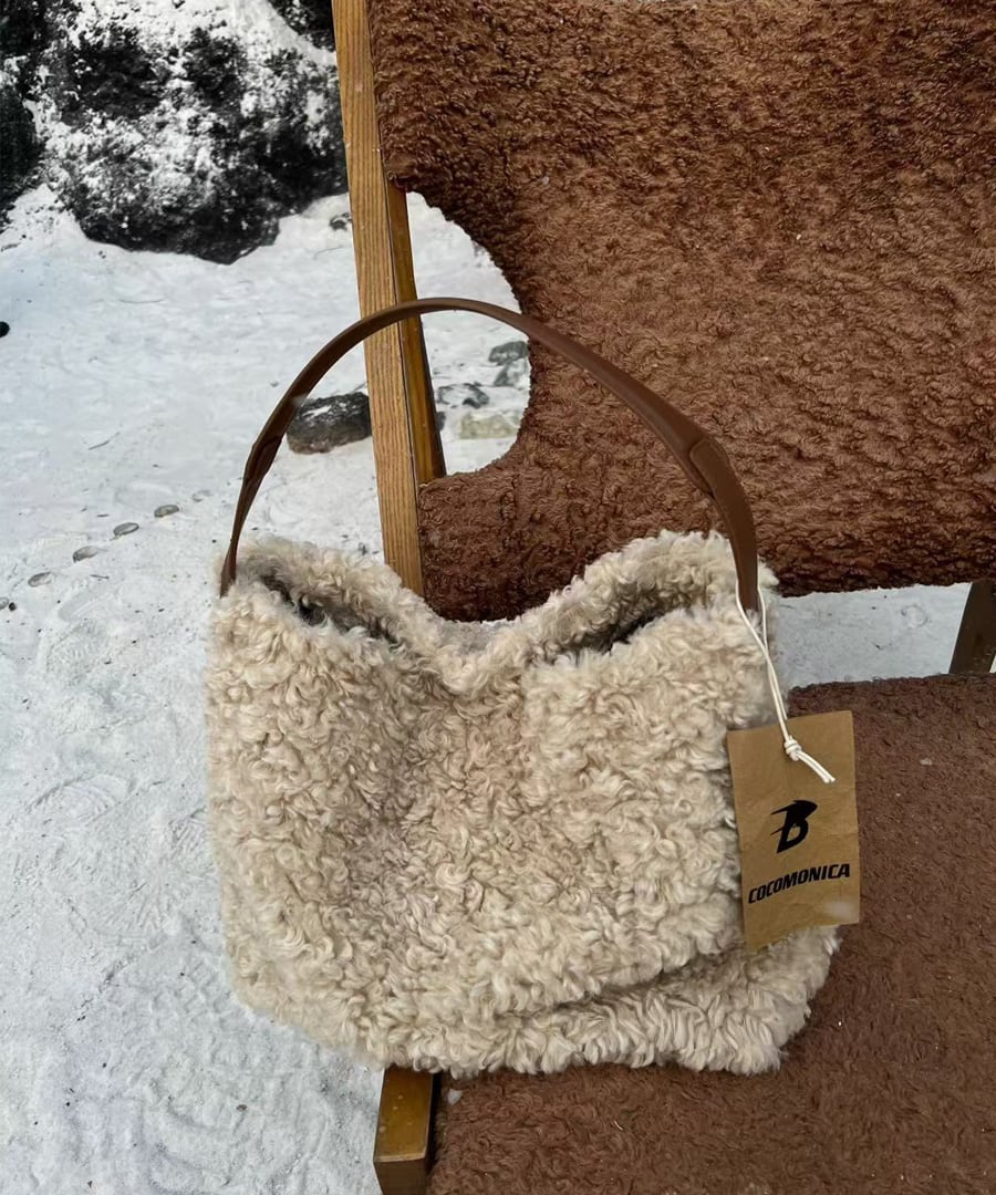ふわふわなフェイクファー素材で、持つだけで気分を華やかにするトートバッグ。