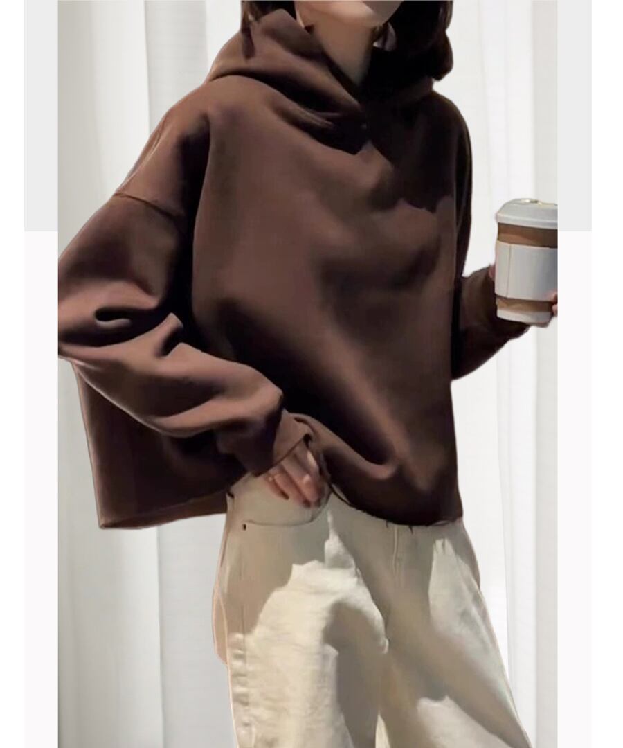 ファッション性と快適さを兼ね備えたスウェットショート丈パーカー。
