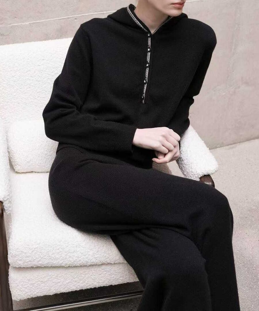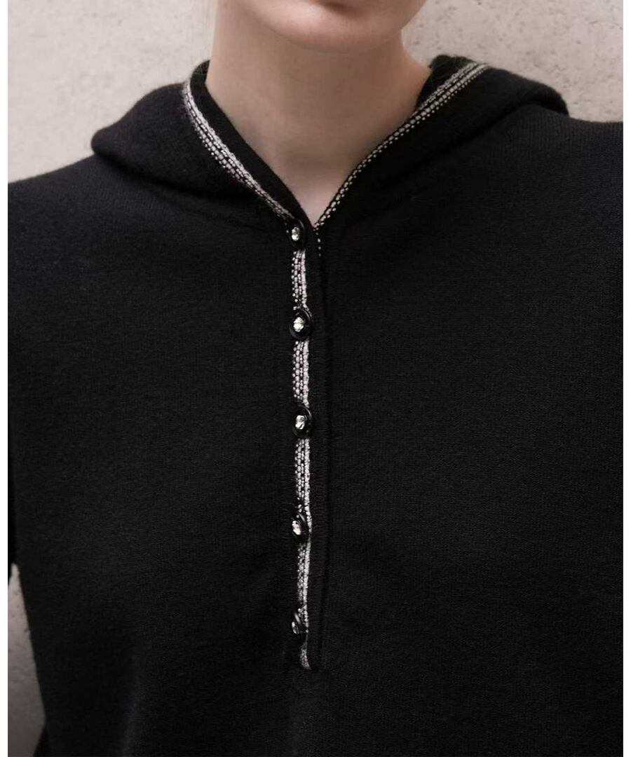 おしゃれさと機能性を兼ね備えたボタンフードニット。