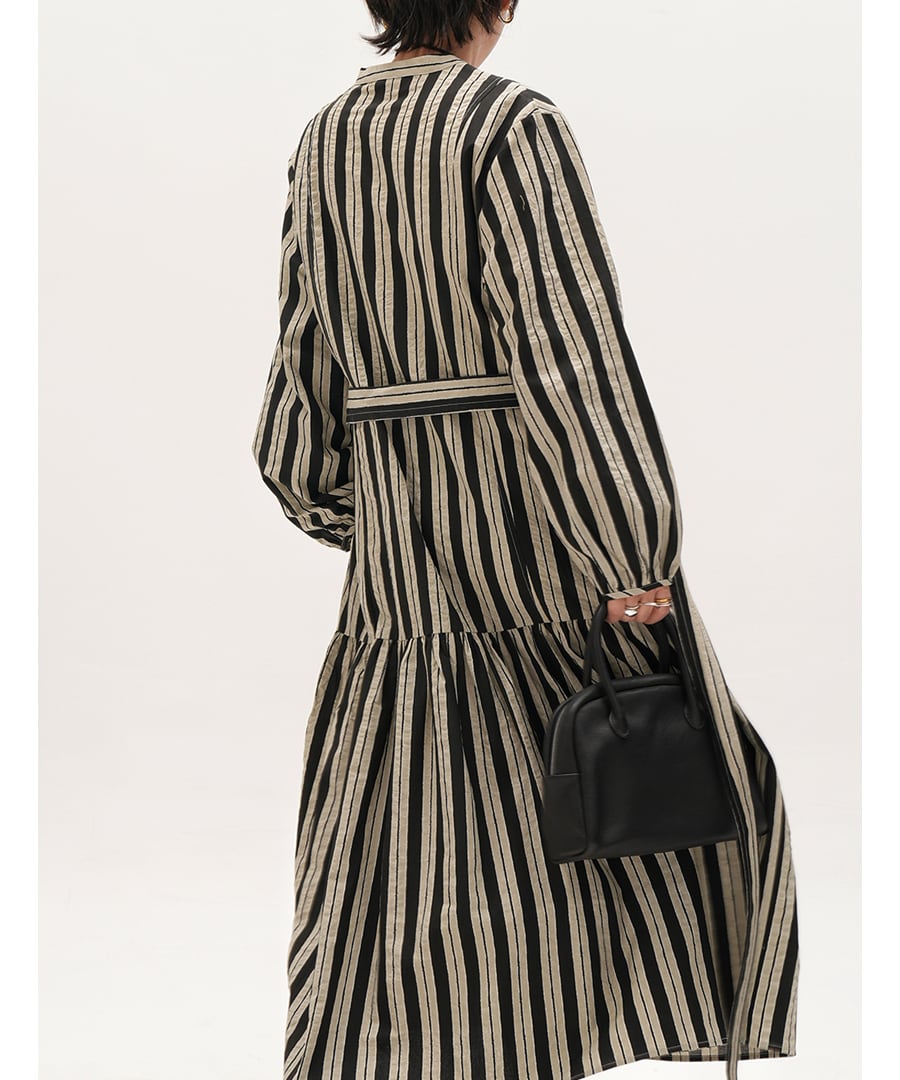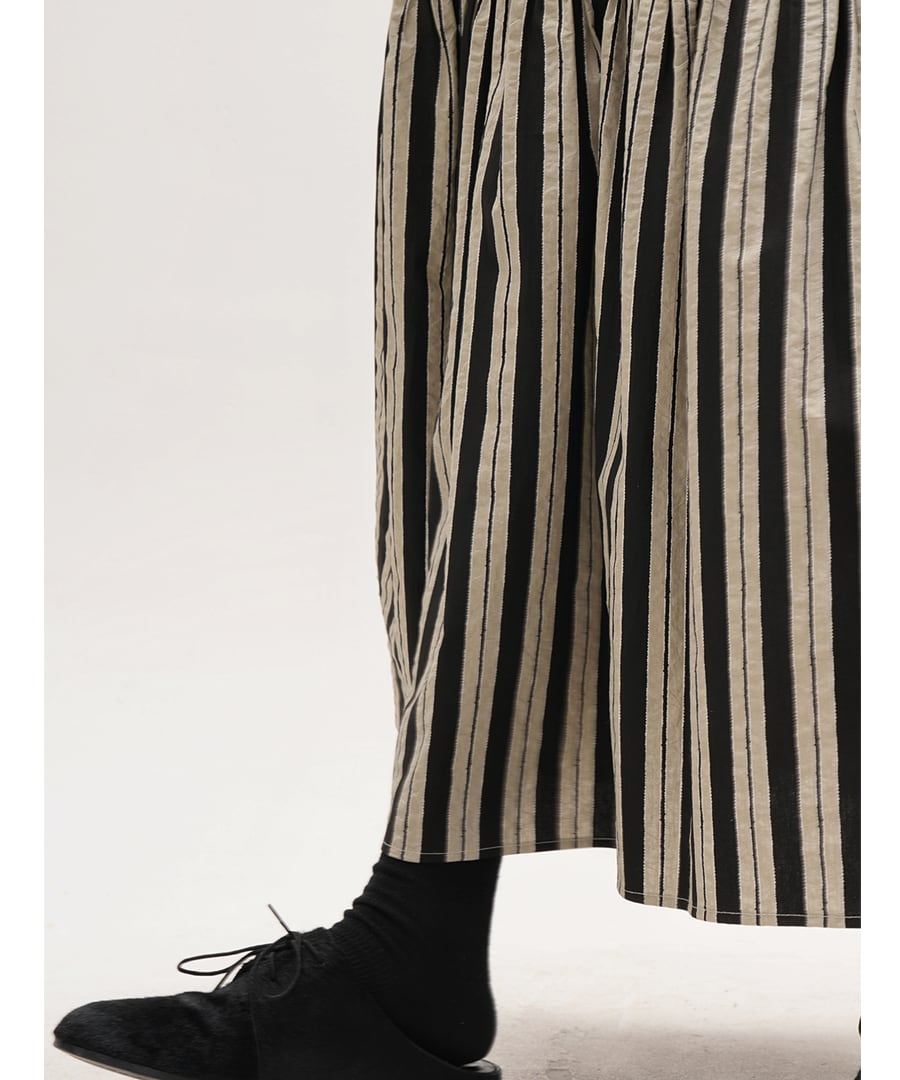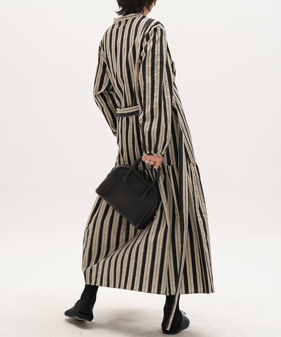 さりげないストライプ柄が印象を引き締め、さまざまなシーンでコーディネートを楽しむことができます。