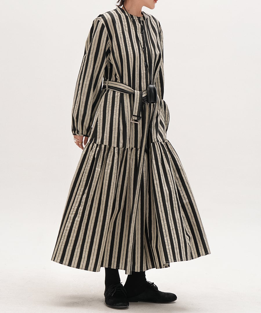 ポロネックスタイルのストライプワンピースは、ゆったりとしたデザインで快適な着心地を実現します。