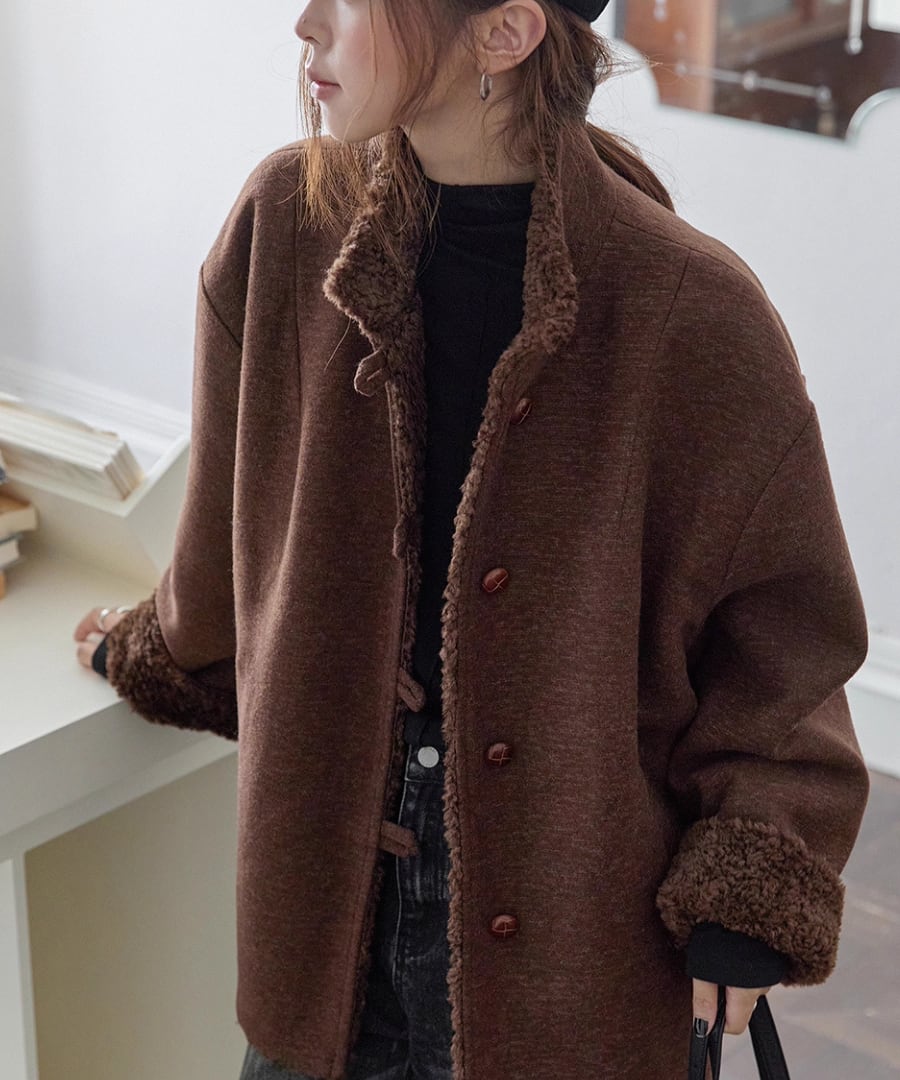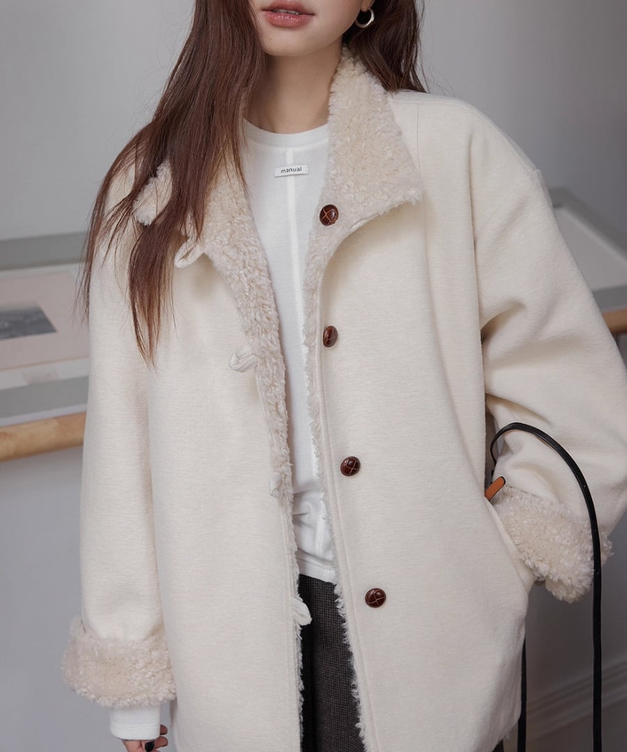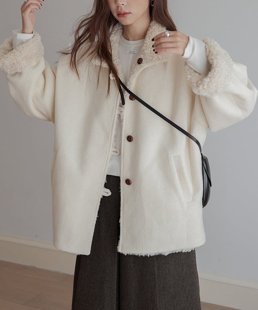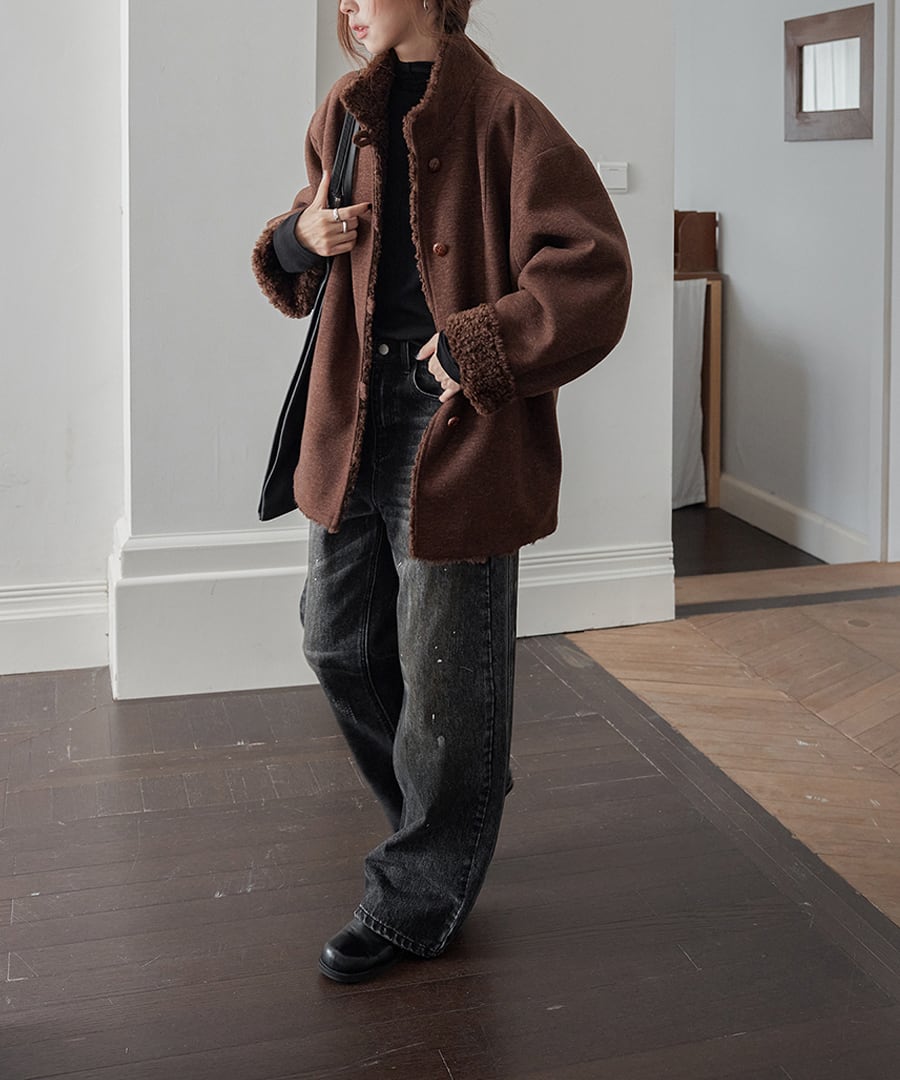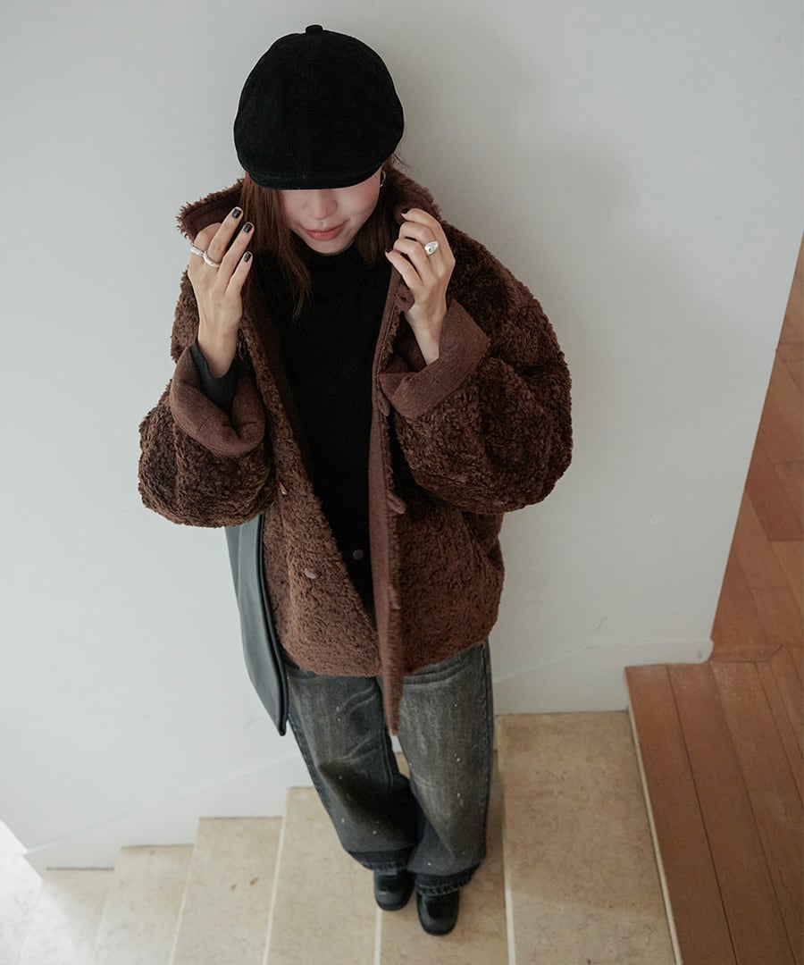 片面は柔らかなラムウール素材、もう一方は異なるテクスチャーを楽しめる一着です。