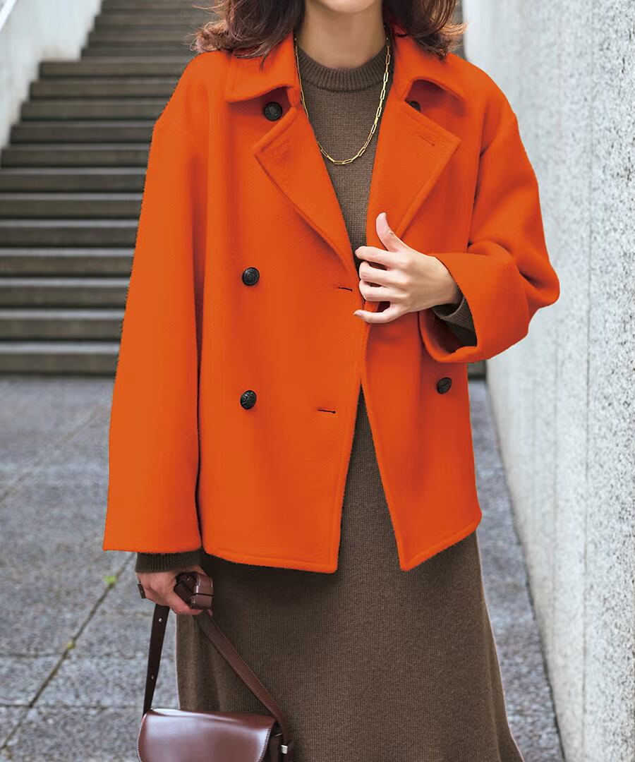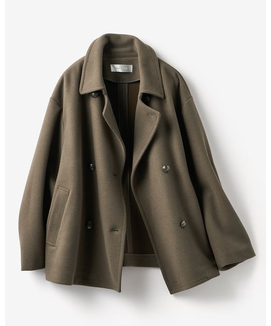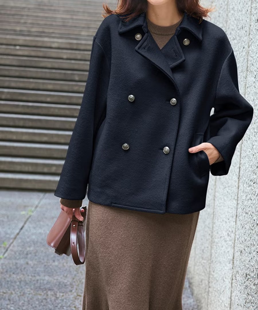 ゆったりとしたサイズ感とふんわりとした柔らかな風合いで、肩に負担をかけず、快適な着心地でピーコートの定番スタイルをお楽しみいただけます。