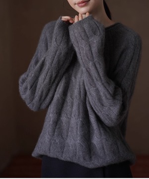 丸襟ウール混セーター◆ゆったりケーブルニット【t-10765】