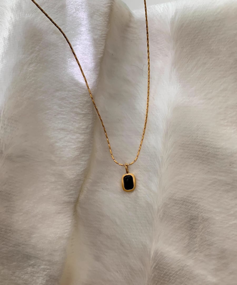 洗練されたデザインと存在感を併せ持つ、ブラック&ゴールドのオニキスネックレス。