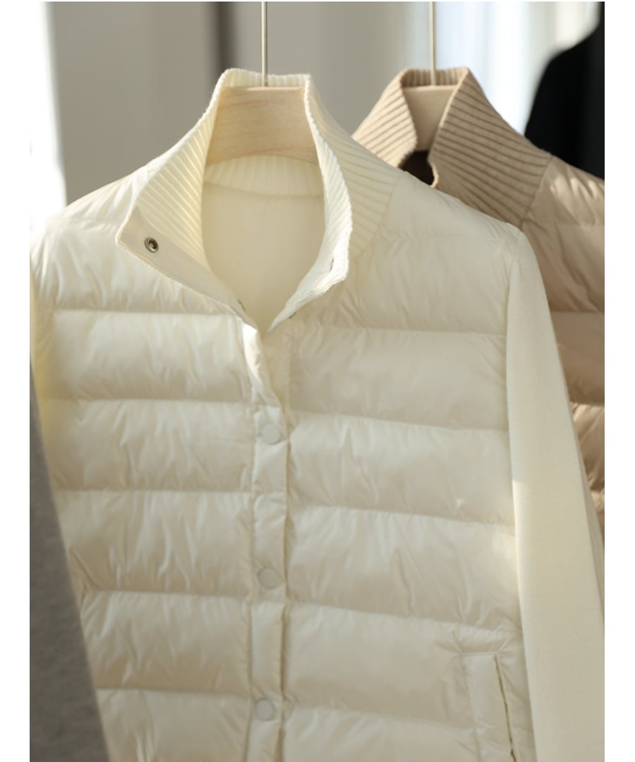 タートルネックデザインが魅力の、ニットダウンジャンパー。