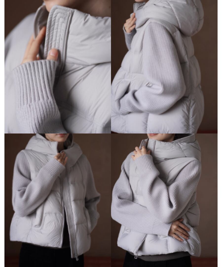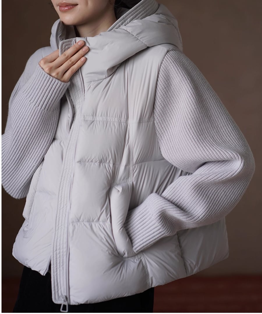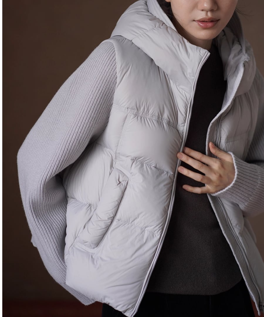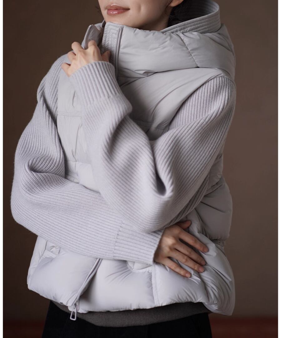 デザインは、ニット部分とダウン部分の絶妙な組み合わせが新鮮な印象を与えます。