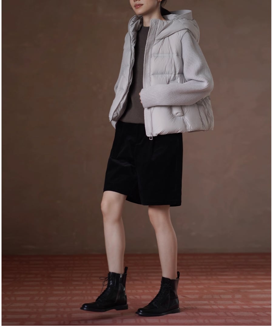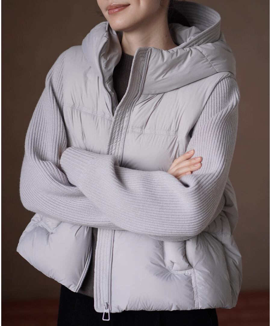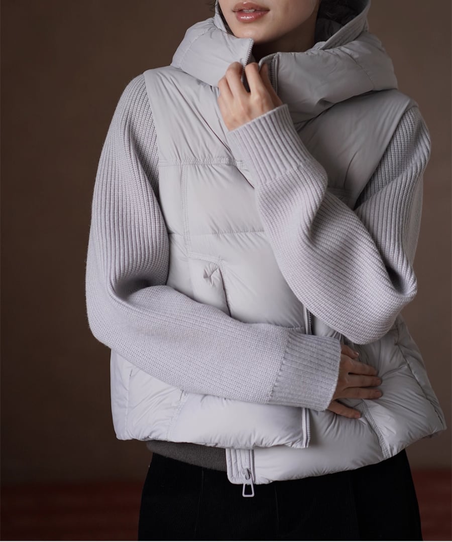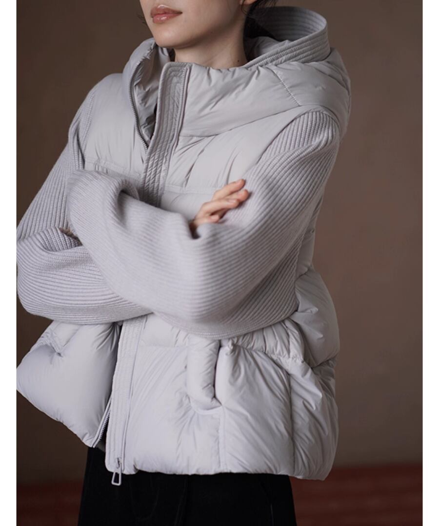 デザインは、ニット部分とダウン部分の絶妙な組み合わせが新鮮な印象を与えます。