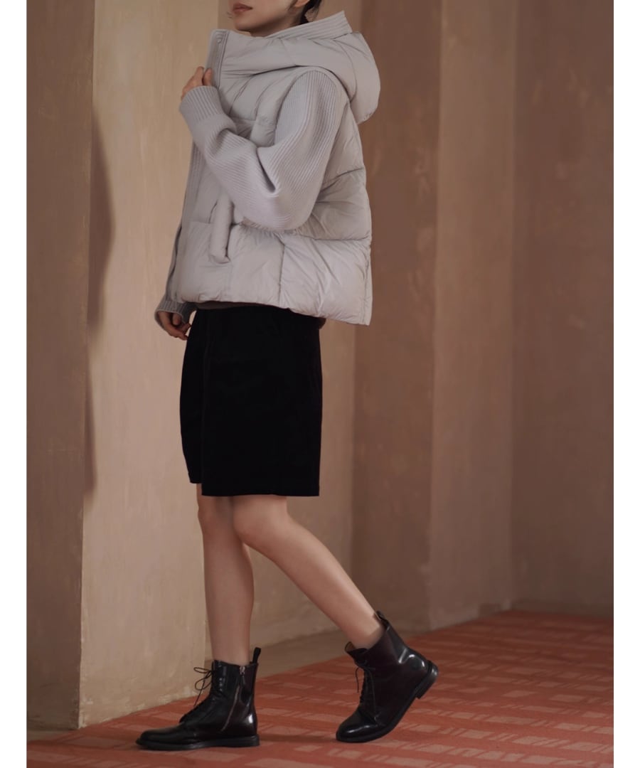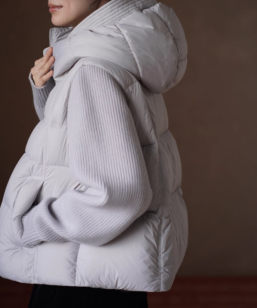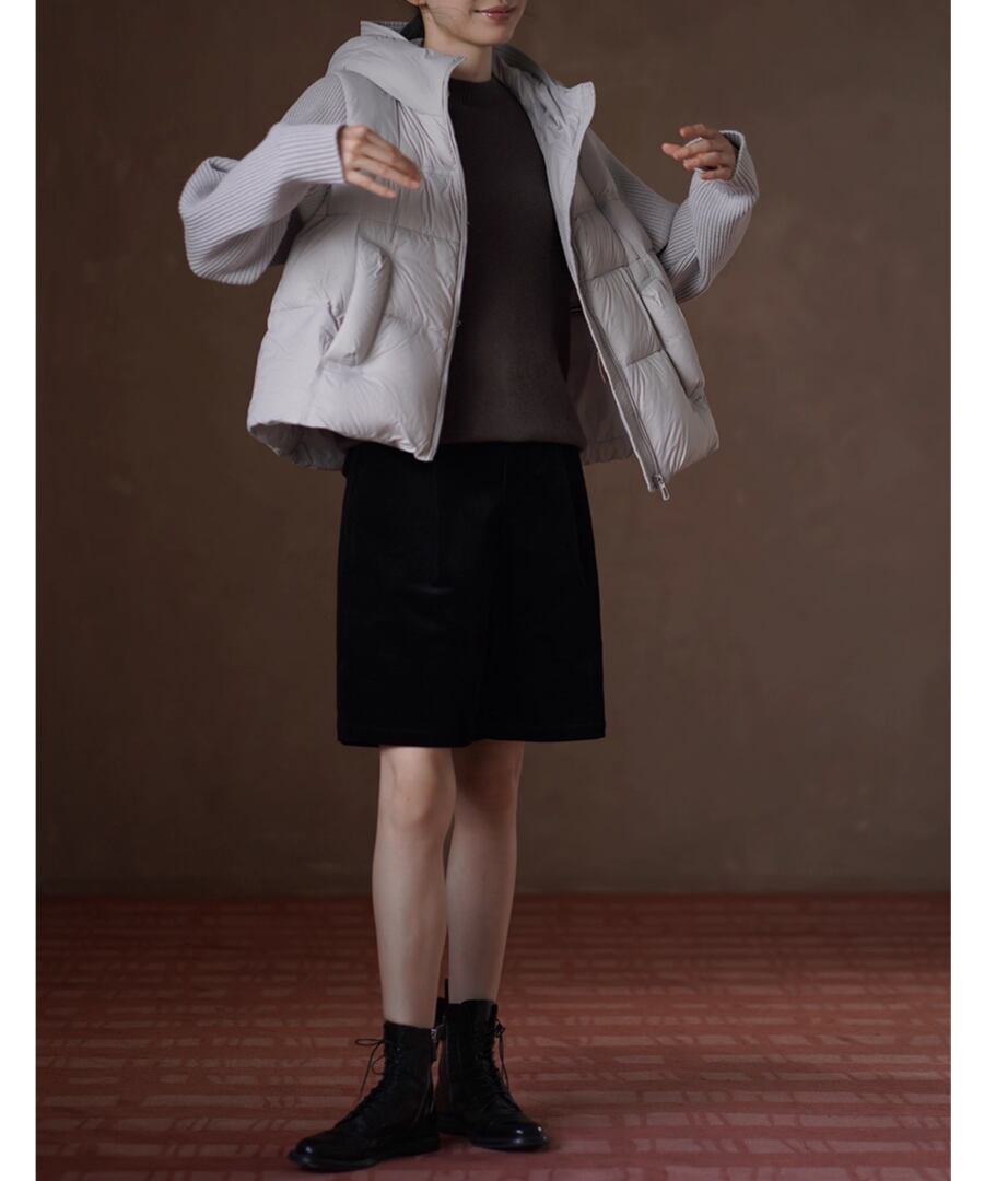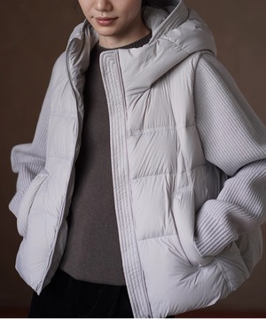 ダウンのボリューム感にリブ編みのニットがアクセントとなり、トレンドを意識したスタイルとなっております。