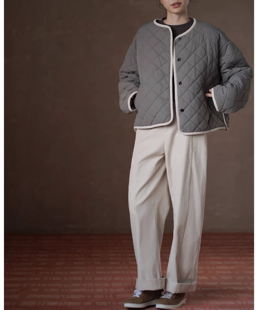 あたたかさをキープしながらも、すっきりとしたラインを演出してくれるので、重ね着をしてもオシャレに決まります。
