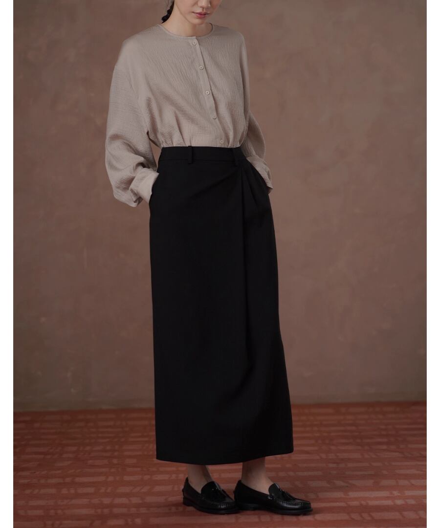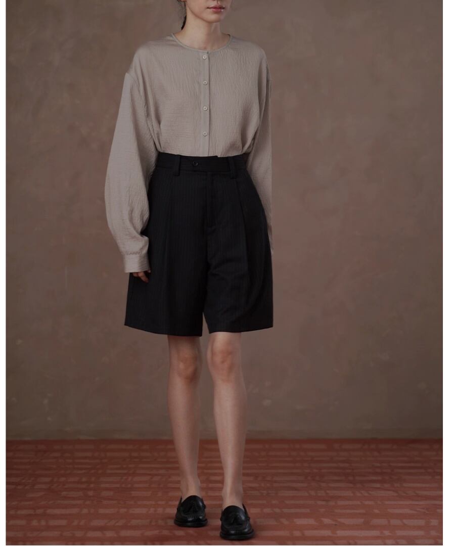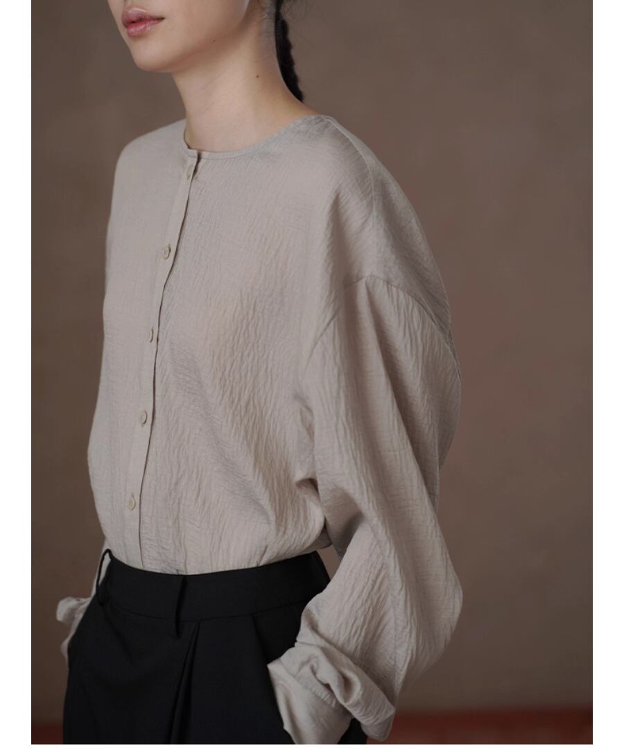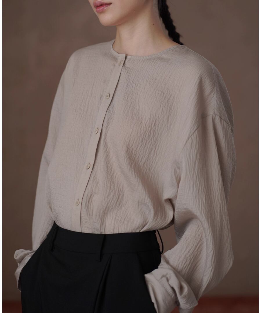 ゆったりしたシルエットとシンプルデザインが魅力のラウンドネックブラウス。