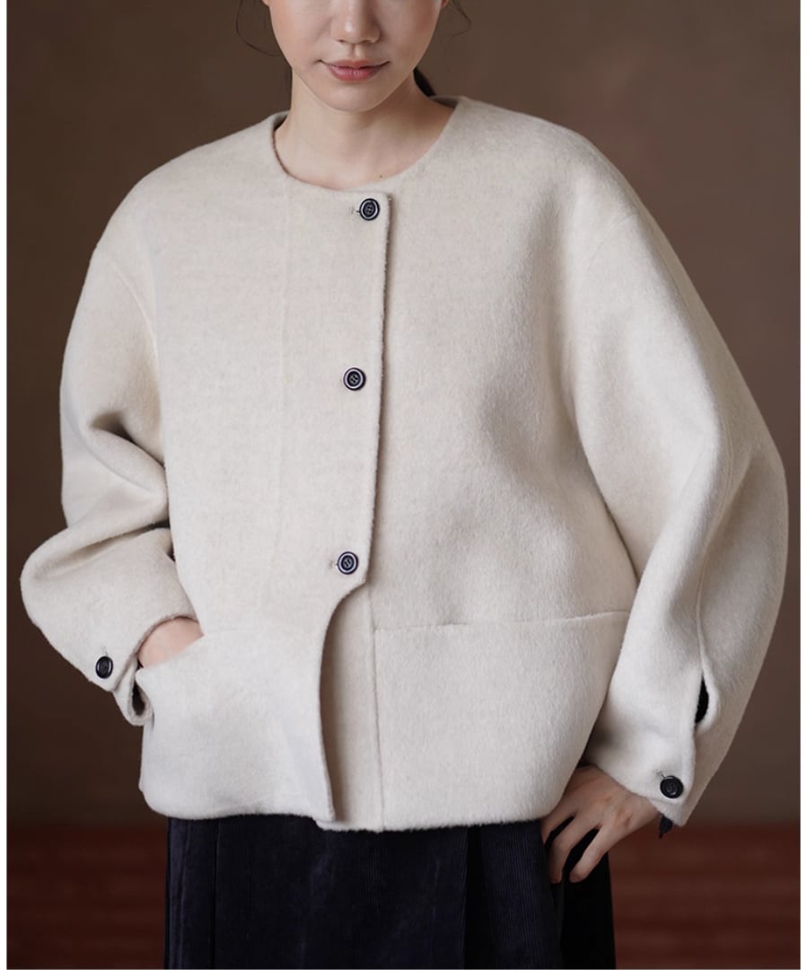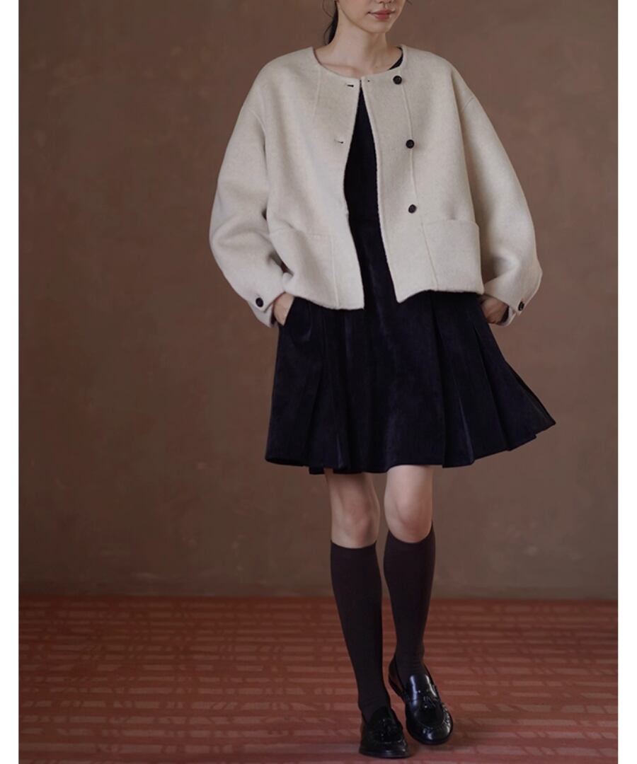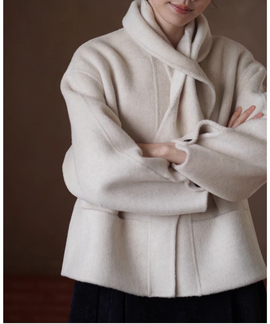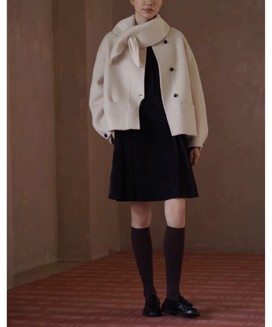 ショート丈ウールコート◆取り外しスカーフ付き【a-50170】