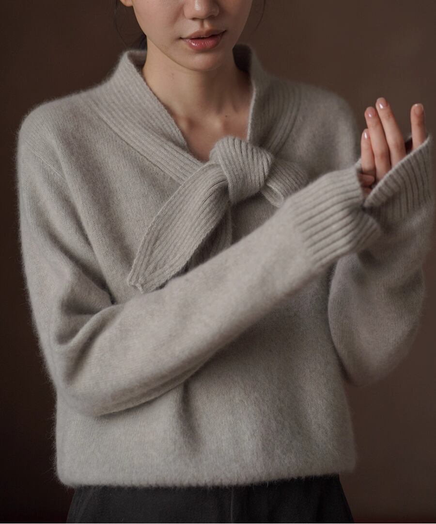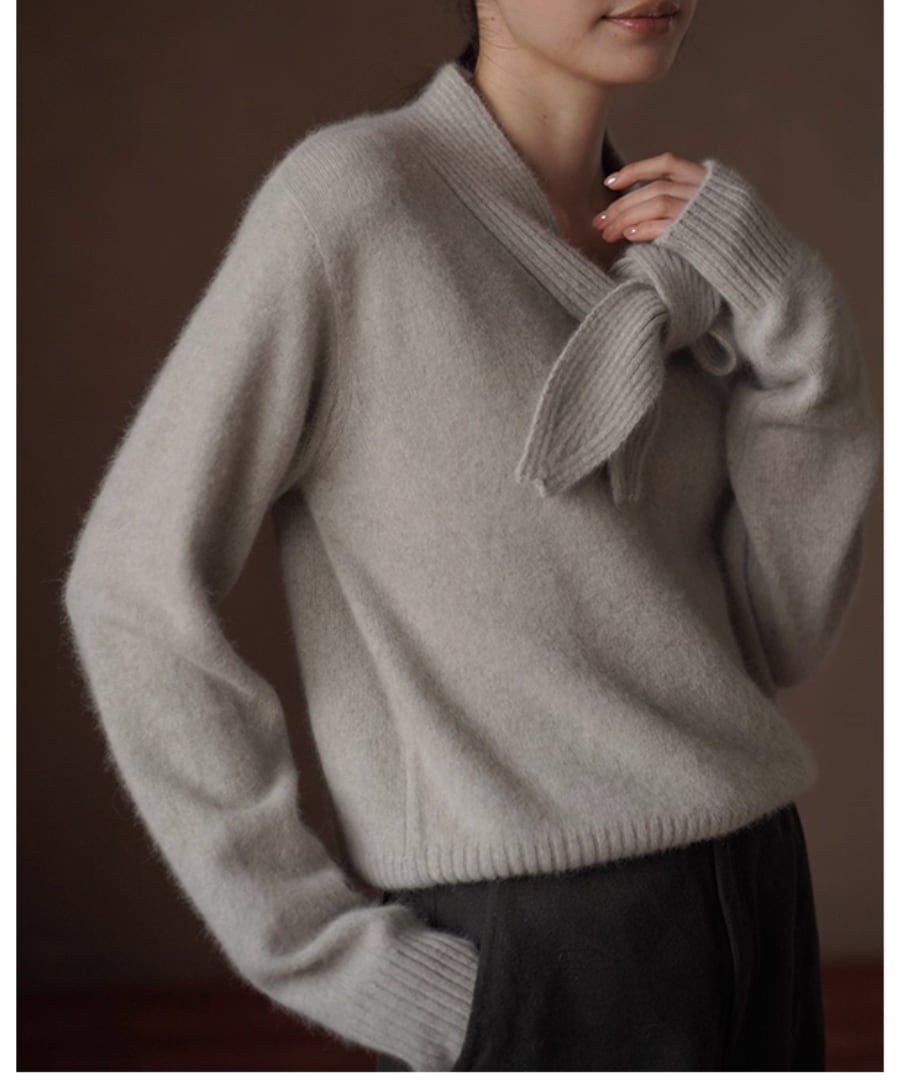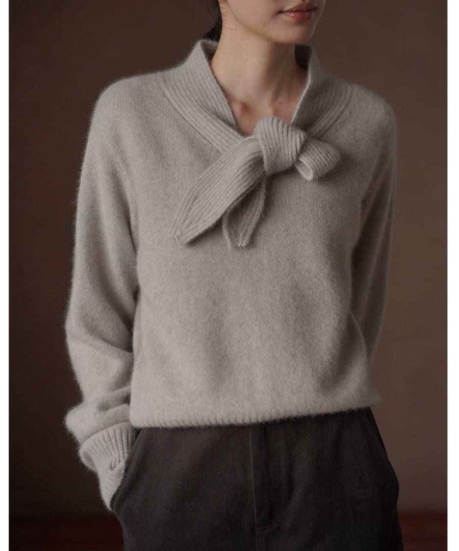 ウール混◆ボウタイリボンニット【t-10534】