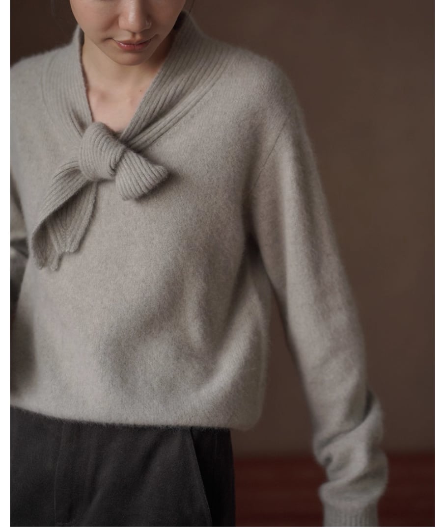 存在感のある華やかなボウタイリボンがフェミニンなニットトップス。