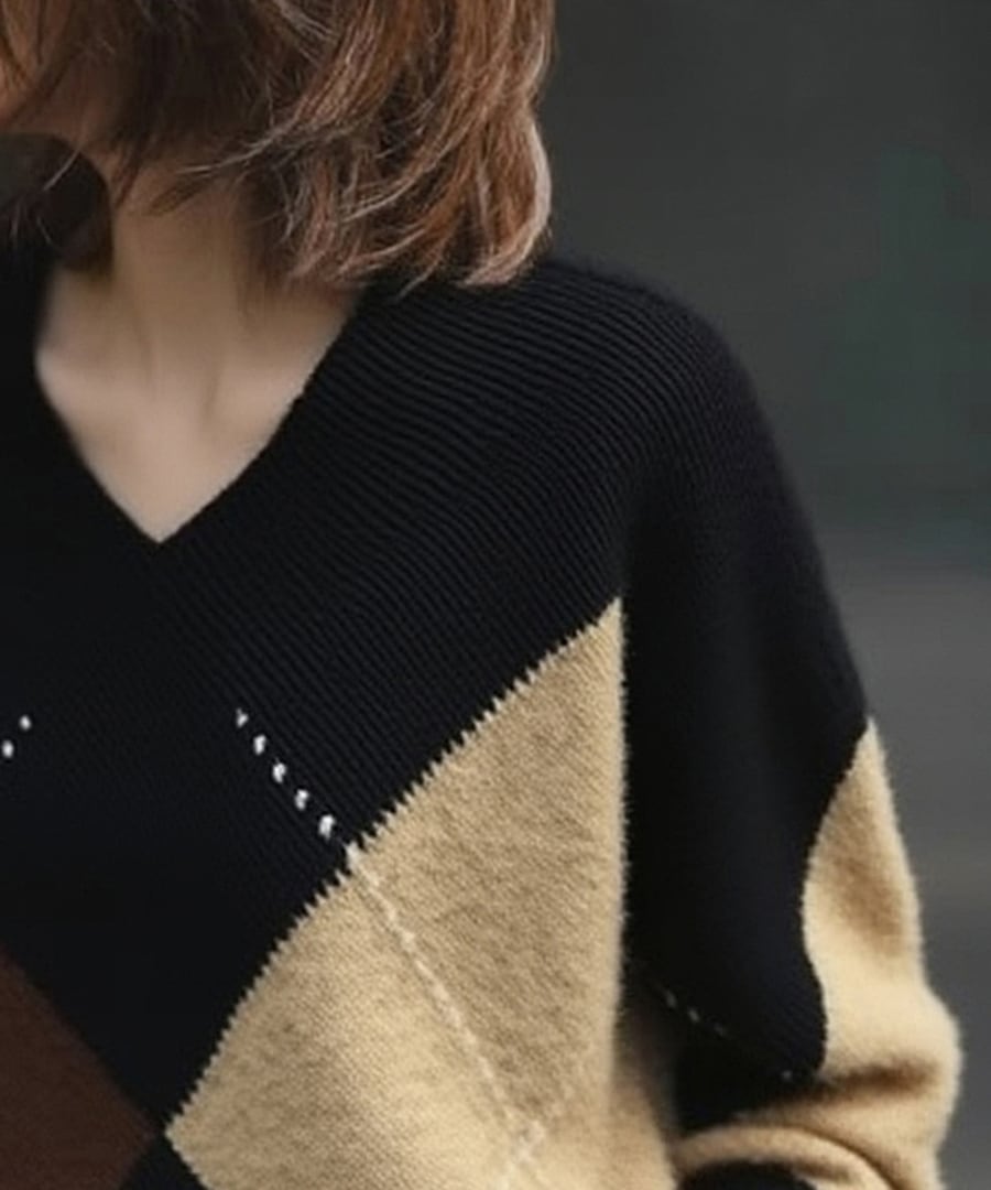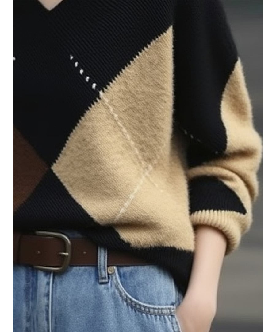 配色ステッチアーガイル柄ニットプルオーバー【t-10577】