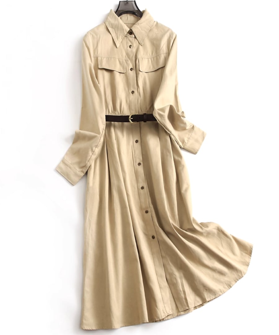 自分らしいスタイルを演出できるデザインで、ウエストをベルトでマークすることで、さらなるシルエットの美しさを引き出します。