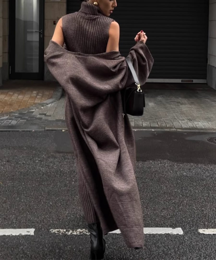 ハイネックニットワンピ&ロングカーディガン【s-40028】