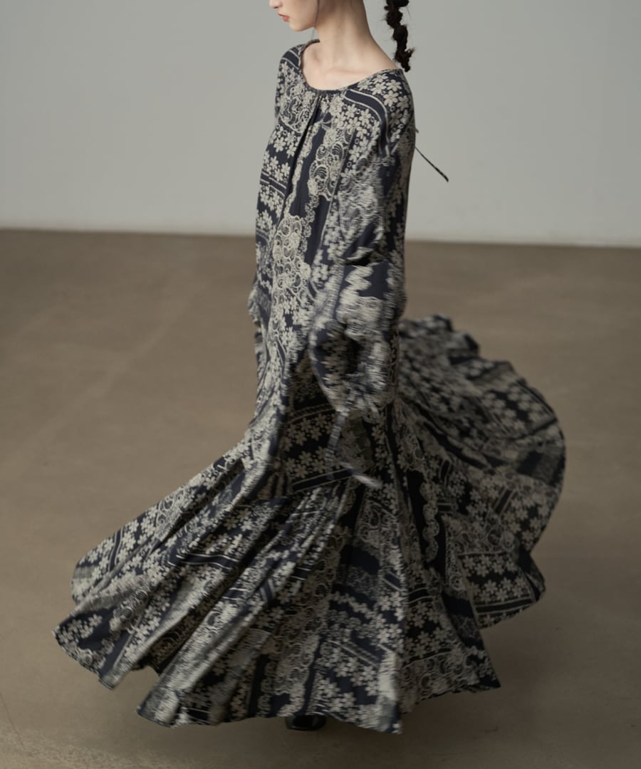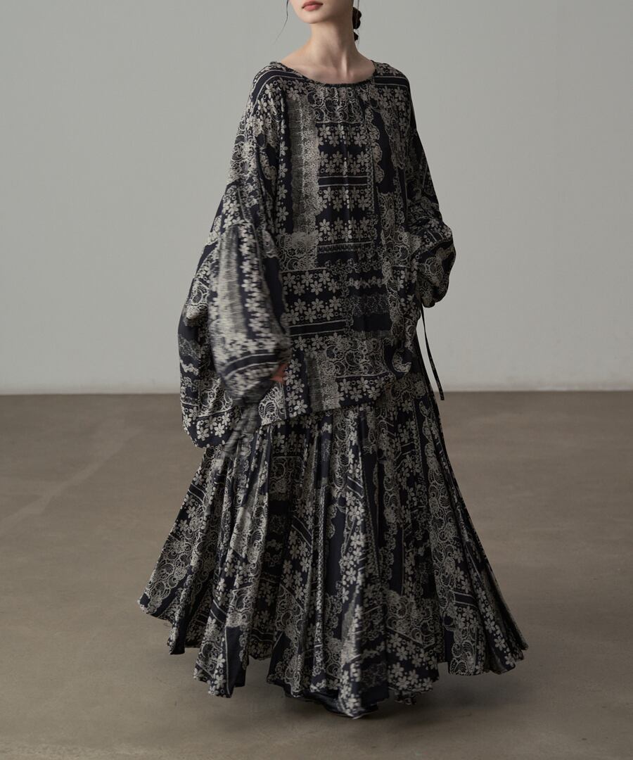 軽やかな生地感で、ゆったりとしたシルエットが魅力の長袖プリントシャツ。