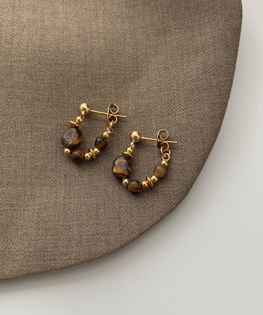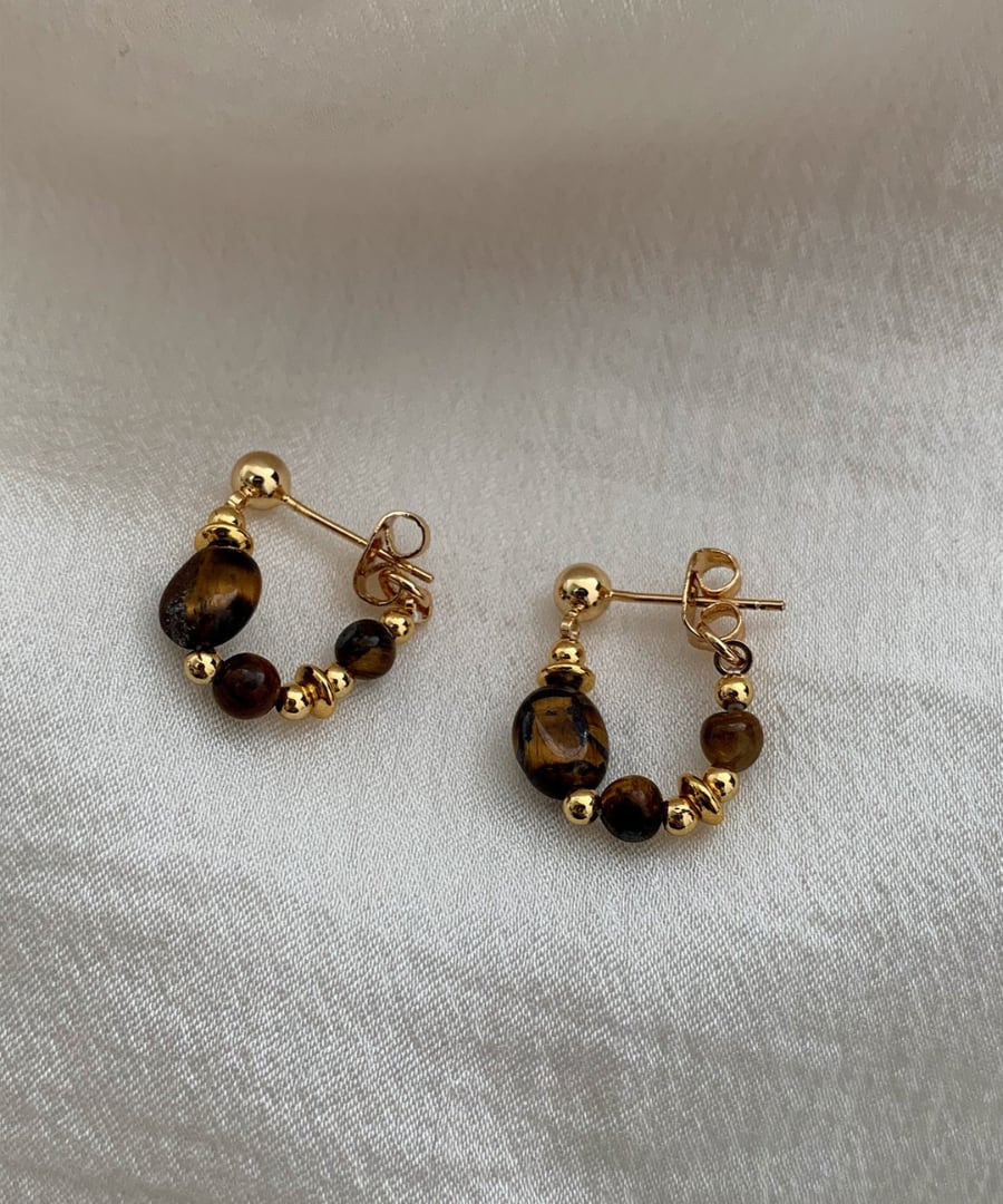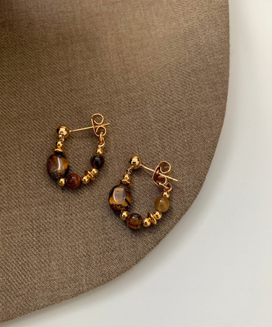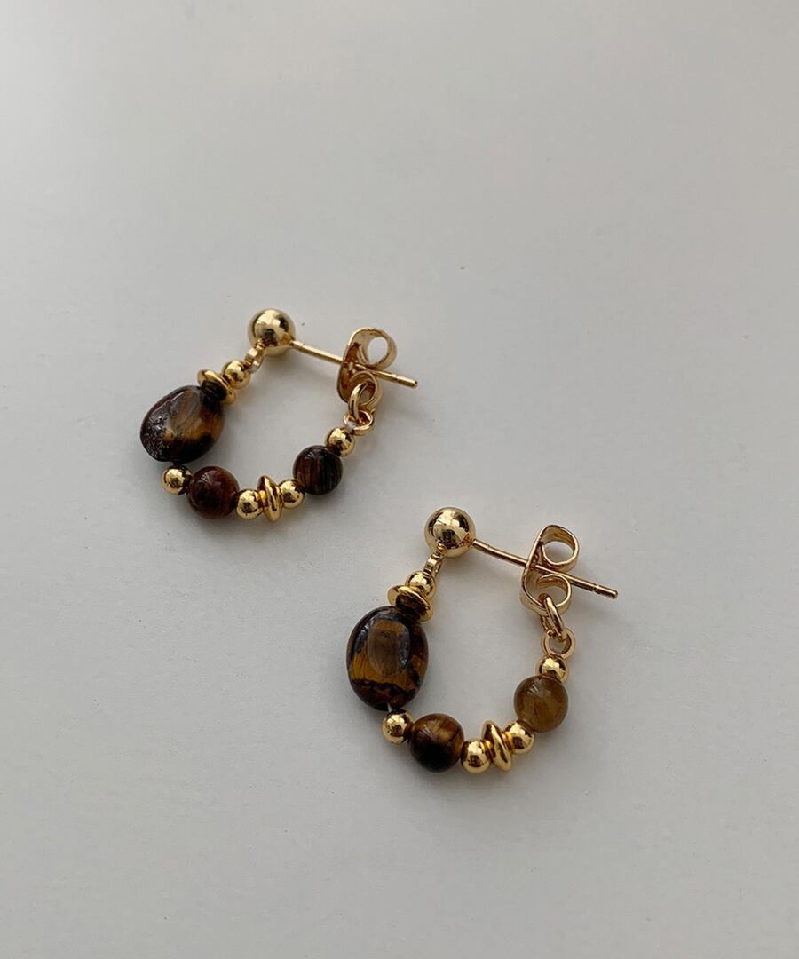 美しい光沢が魅力のタイガーアイスタッドピアス。