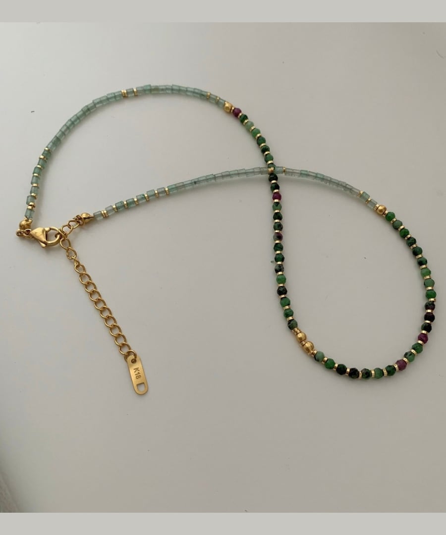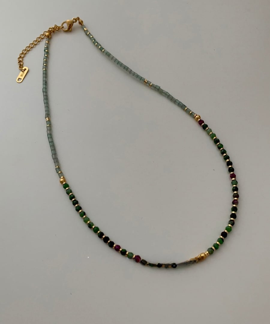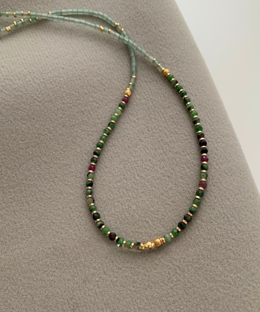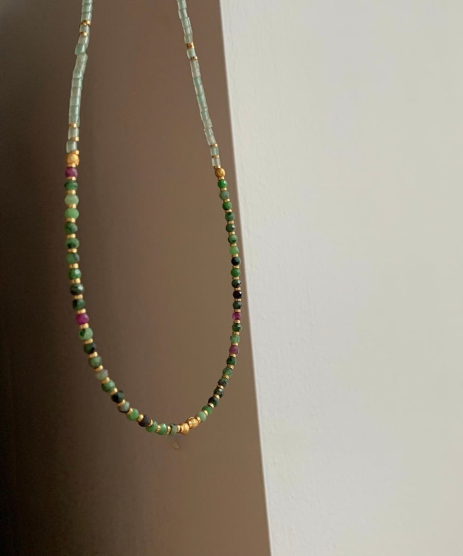 美しいターコイズビーズが首元を彩る、上品な鎖骨ネックレス。