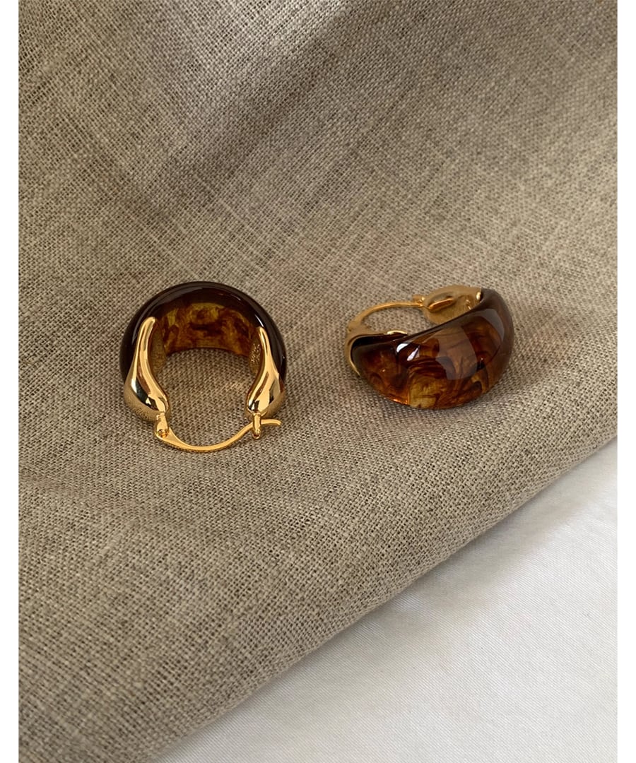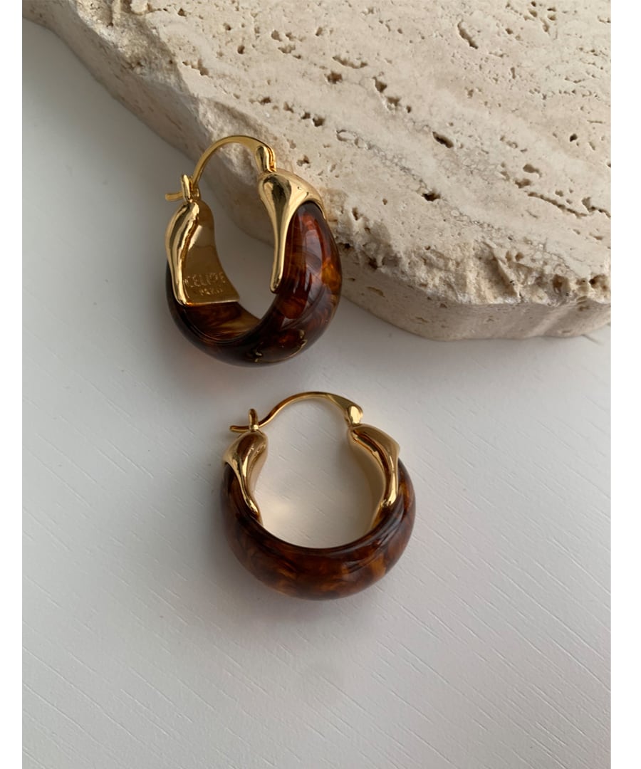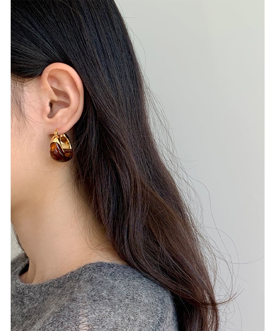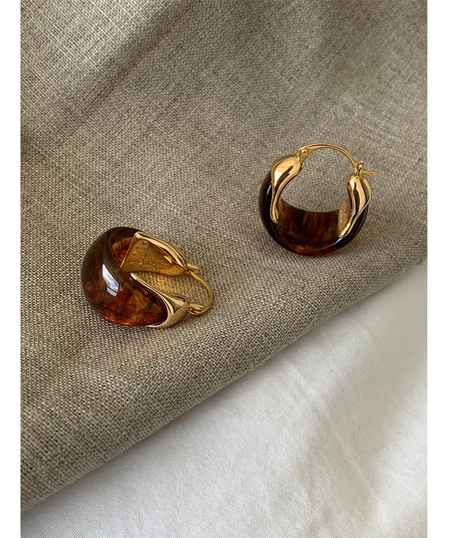 琥珀色が魅力的なフープピアス。