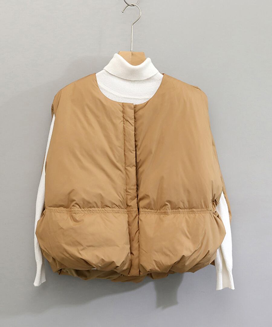 ふんわりとしたコクーンシルエットが特徴的なダウンベスト。
