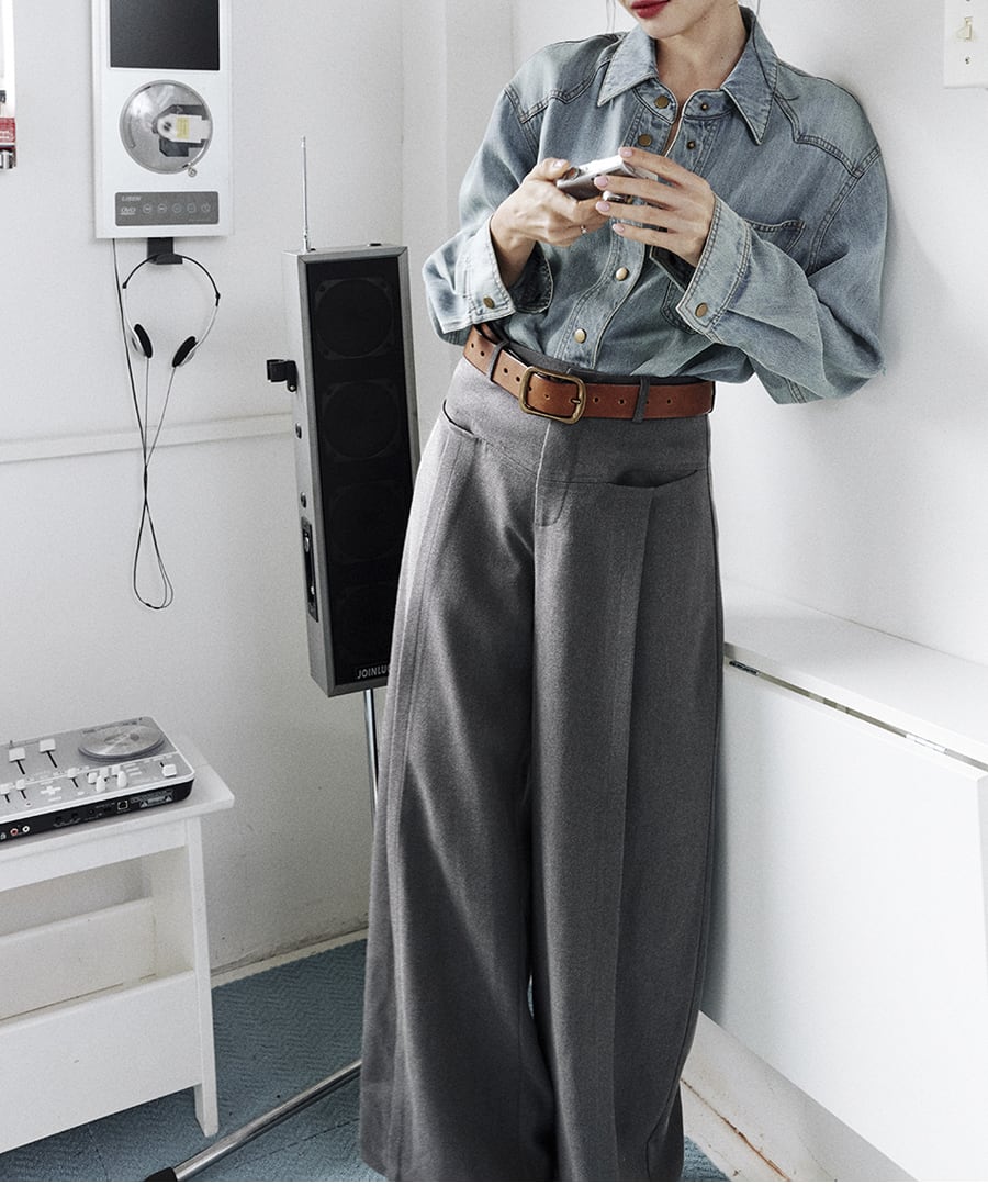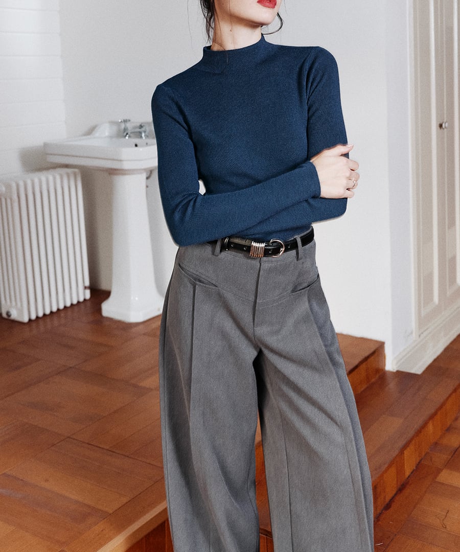 フロントポケット◆ワイドスーツパンツ【p-20152】