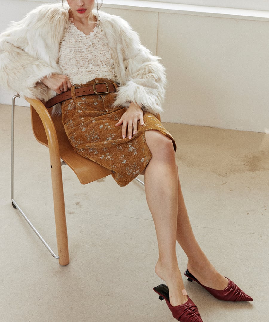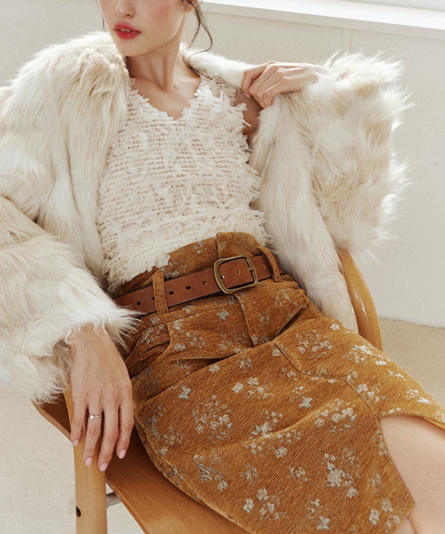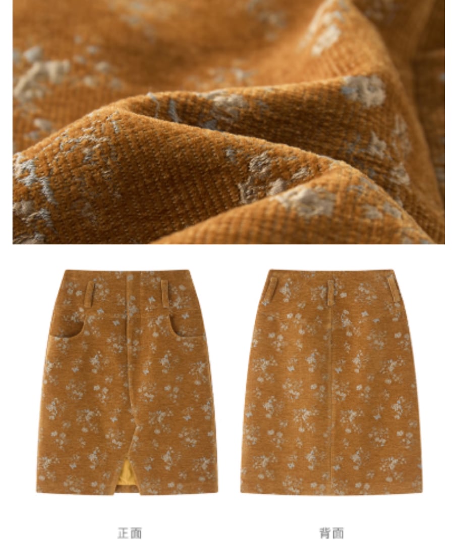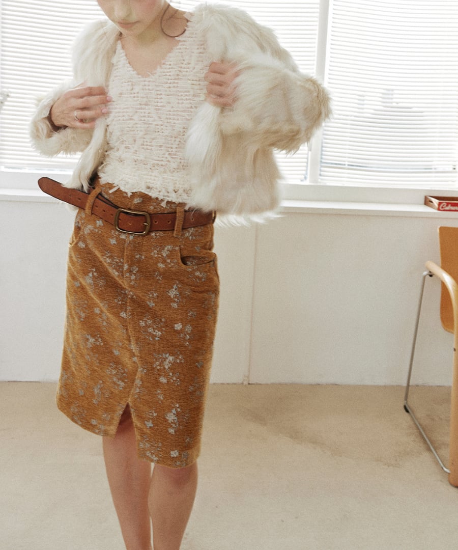 ジャカード素材を使用した洗練されたフロントスリットスカート。