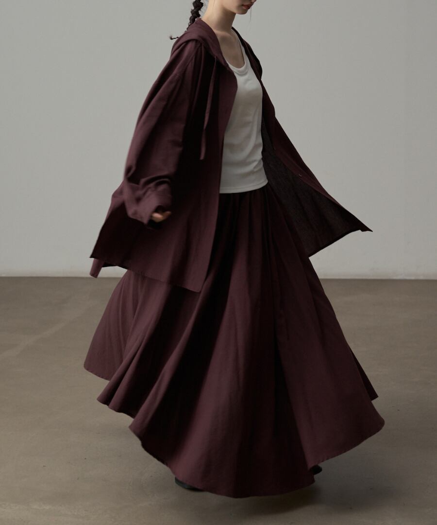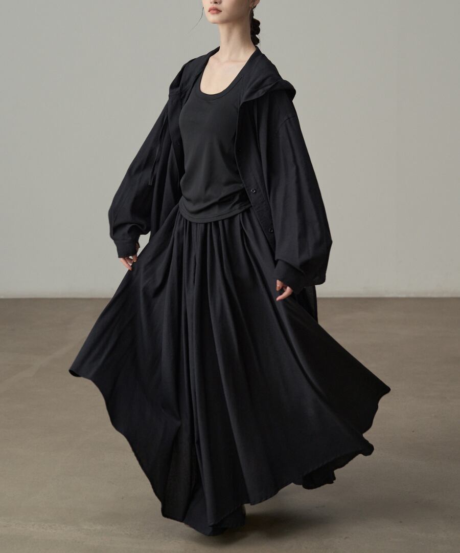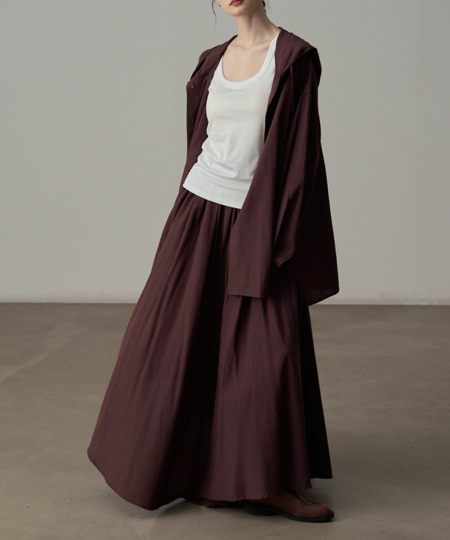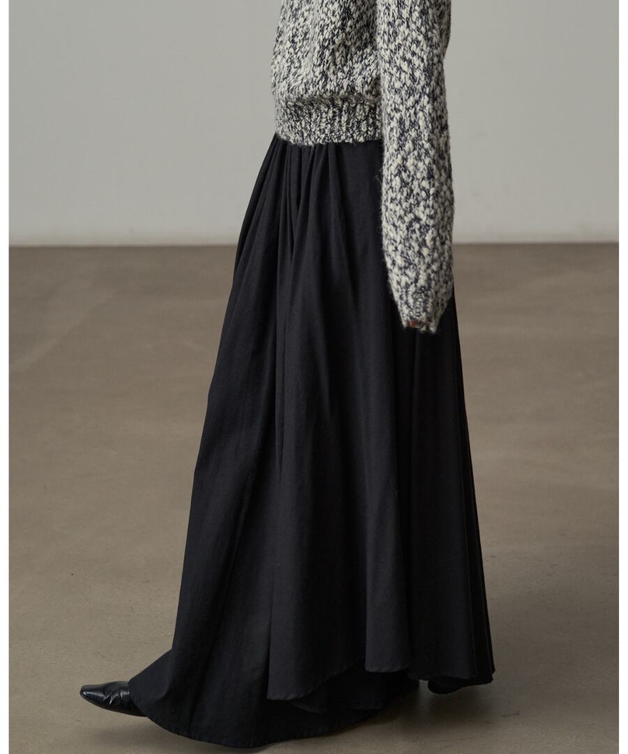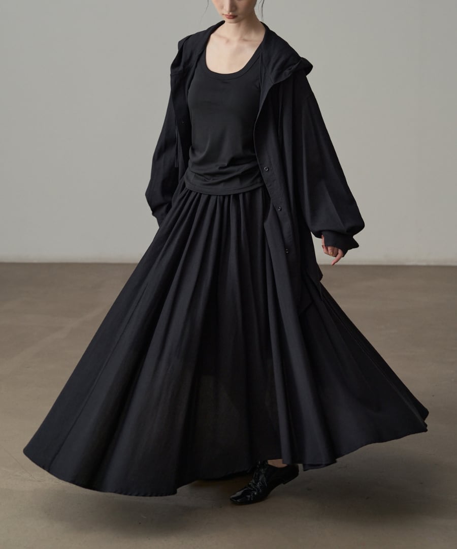 優雅なAラインシルエットが特徴のロングフレアスカート。