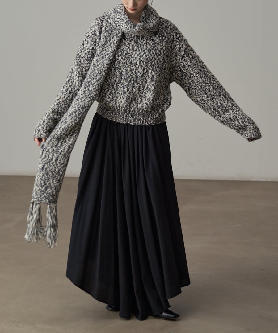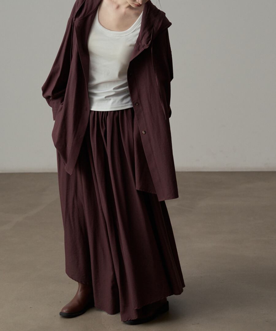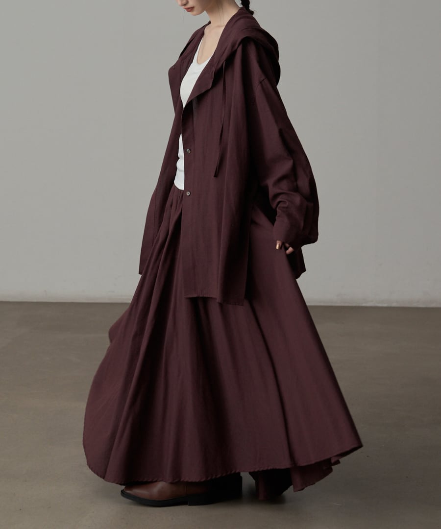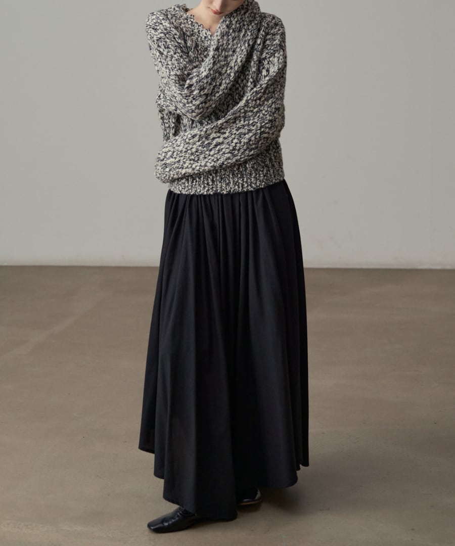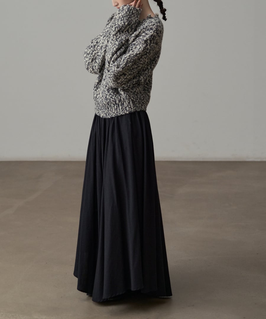 優雅なAラインシルエットが特徴のロングフレアスカート。