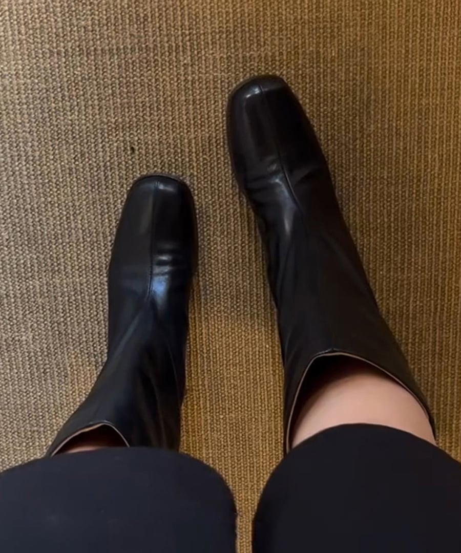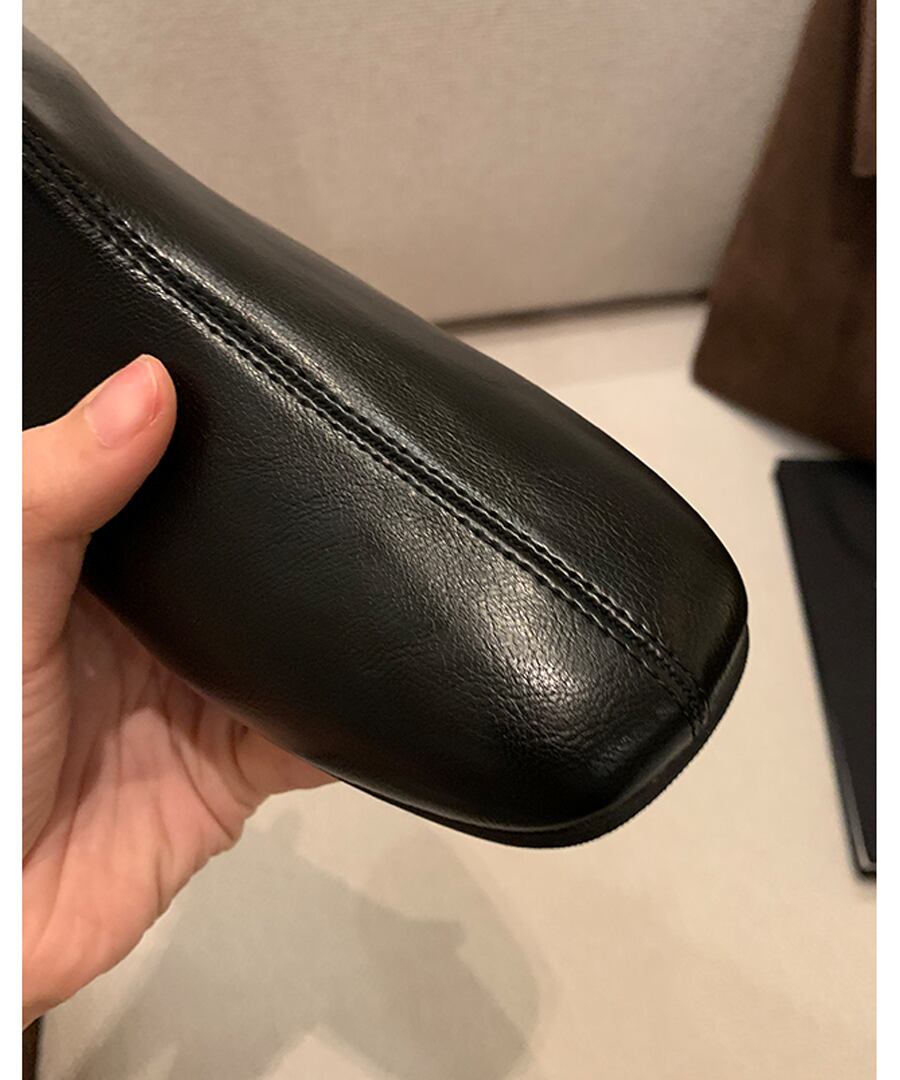 温かみのあるシープスキン素材を使用しており、歩くたびに足元から心地よさを感じられます。シルエットの美しさも魅力的な一足です。