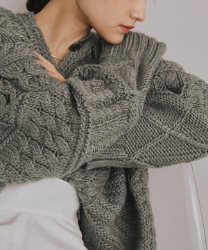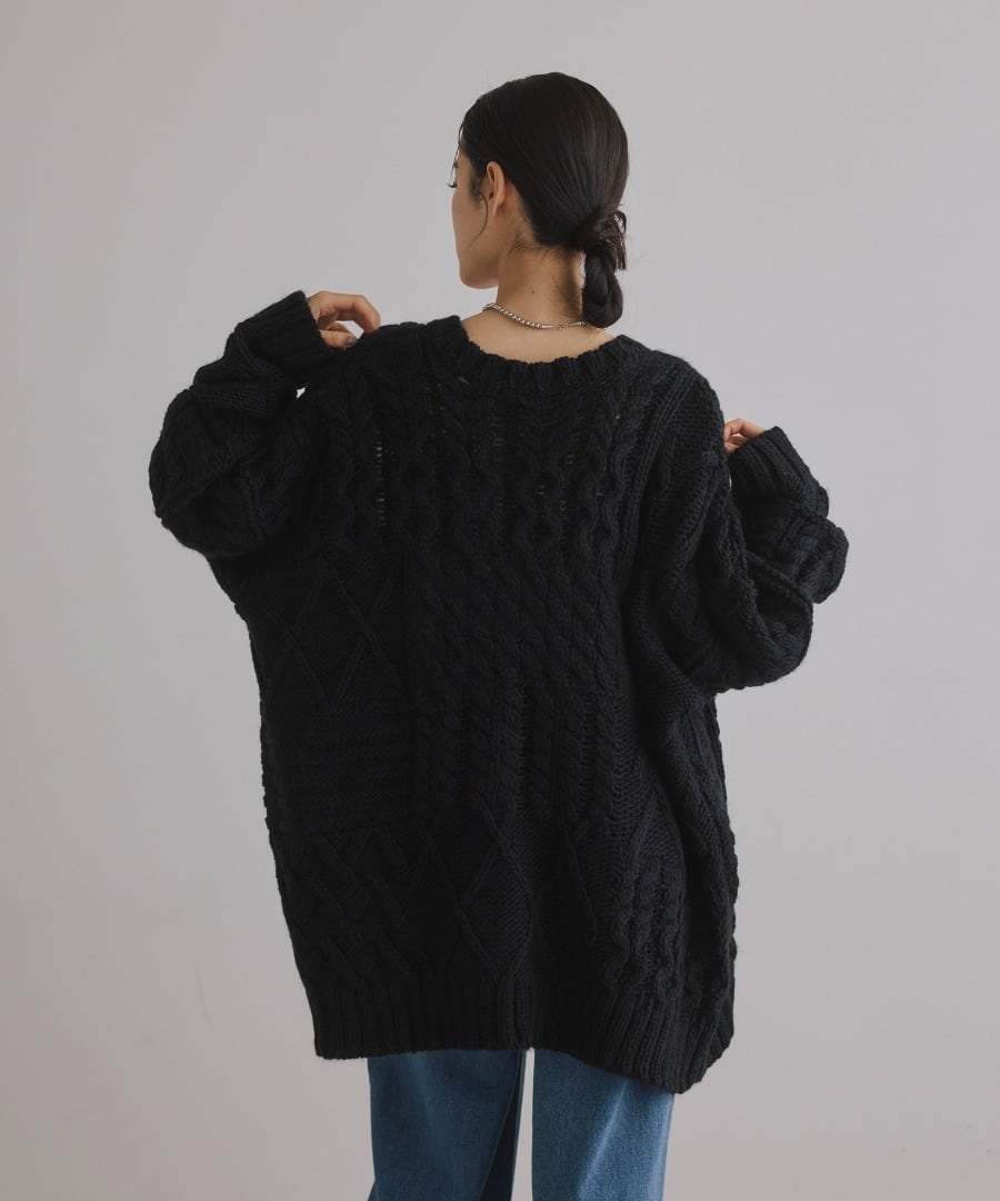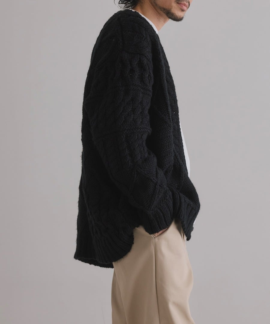 混合パターン編みハンドニットカーディガン【a-50079】.