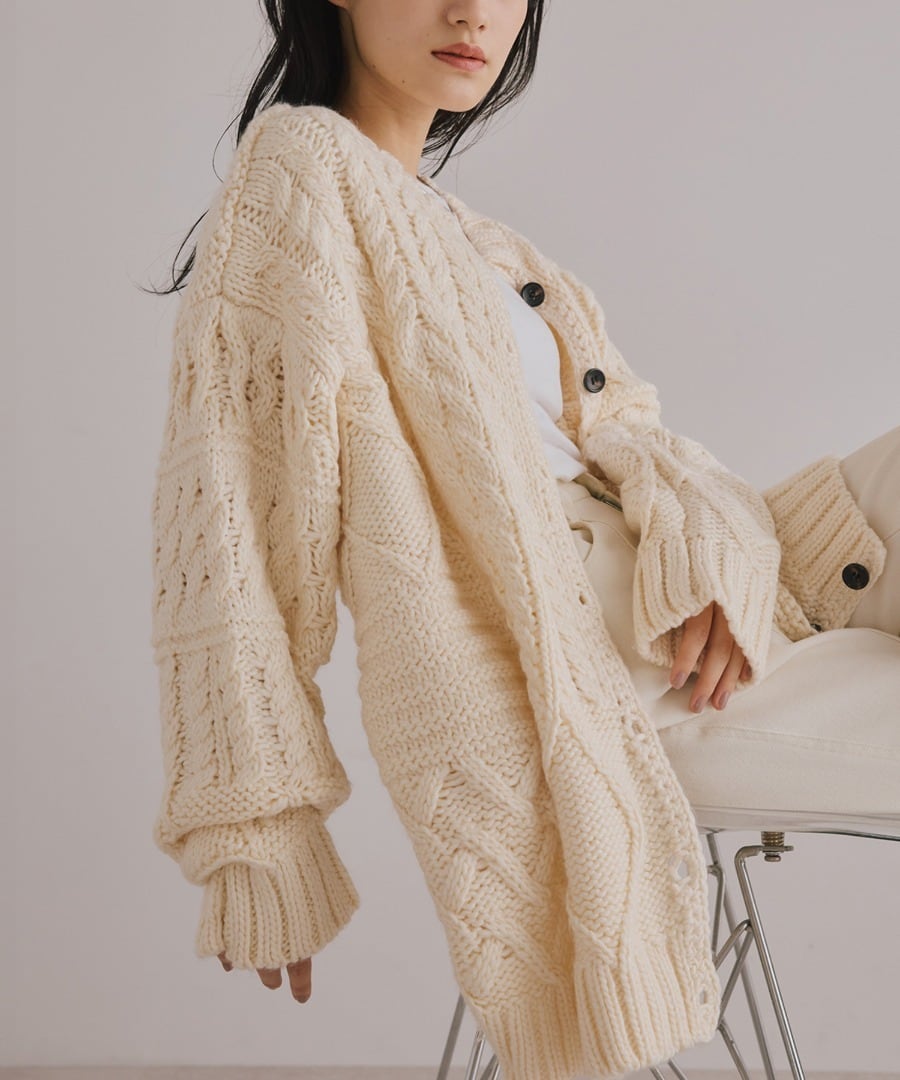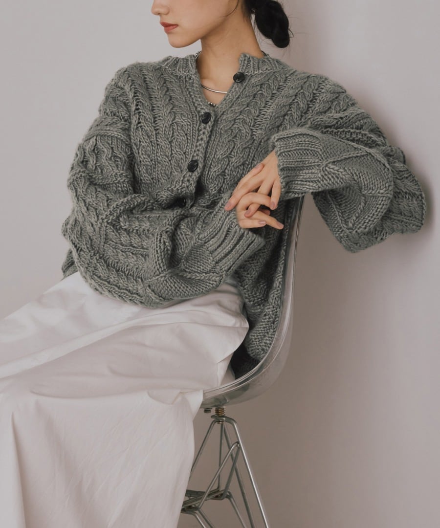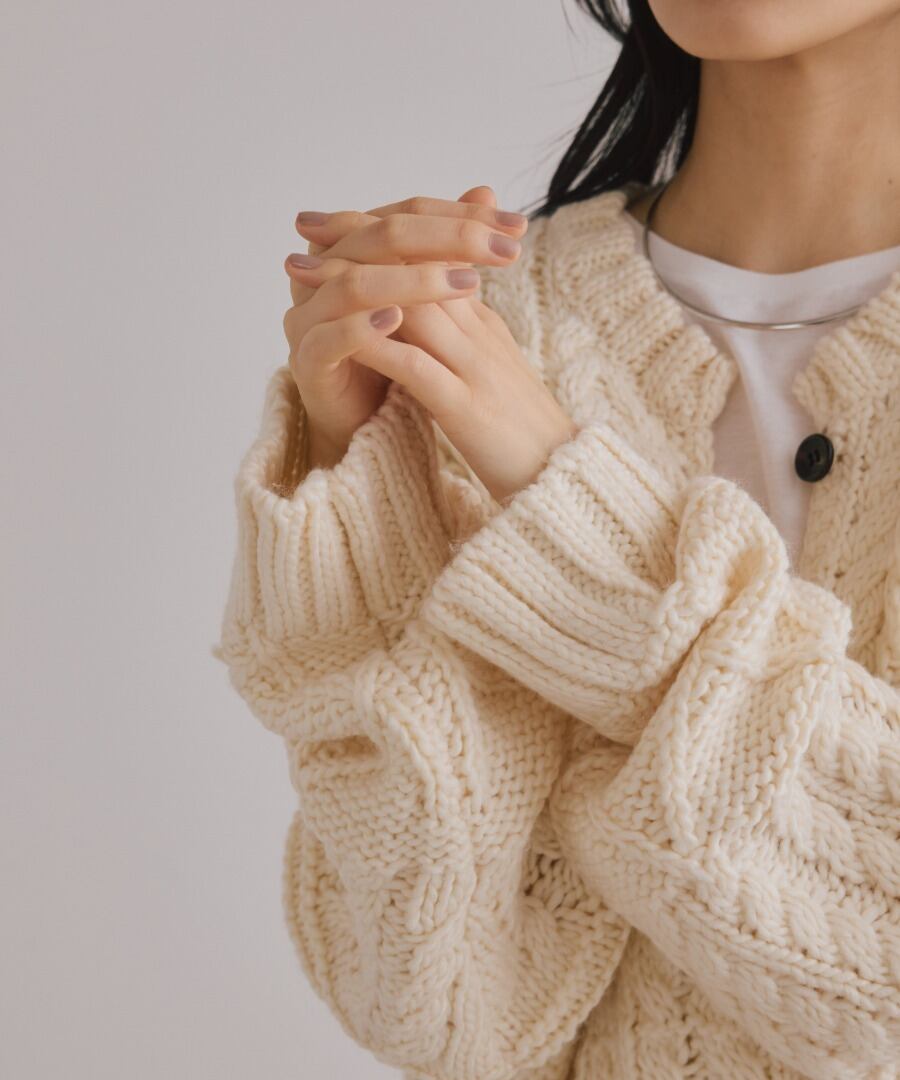 表情豊かな編み地が魅力。クラフト感漂うヘビーゲージのハンドニットカーディガン