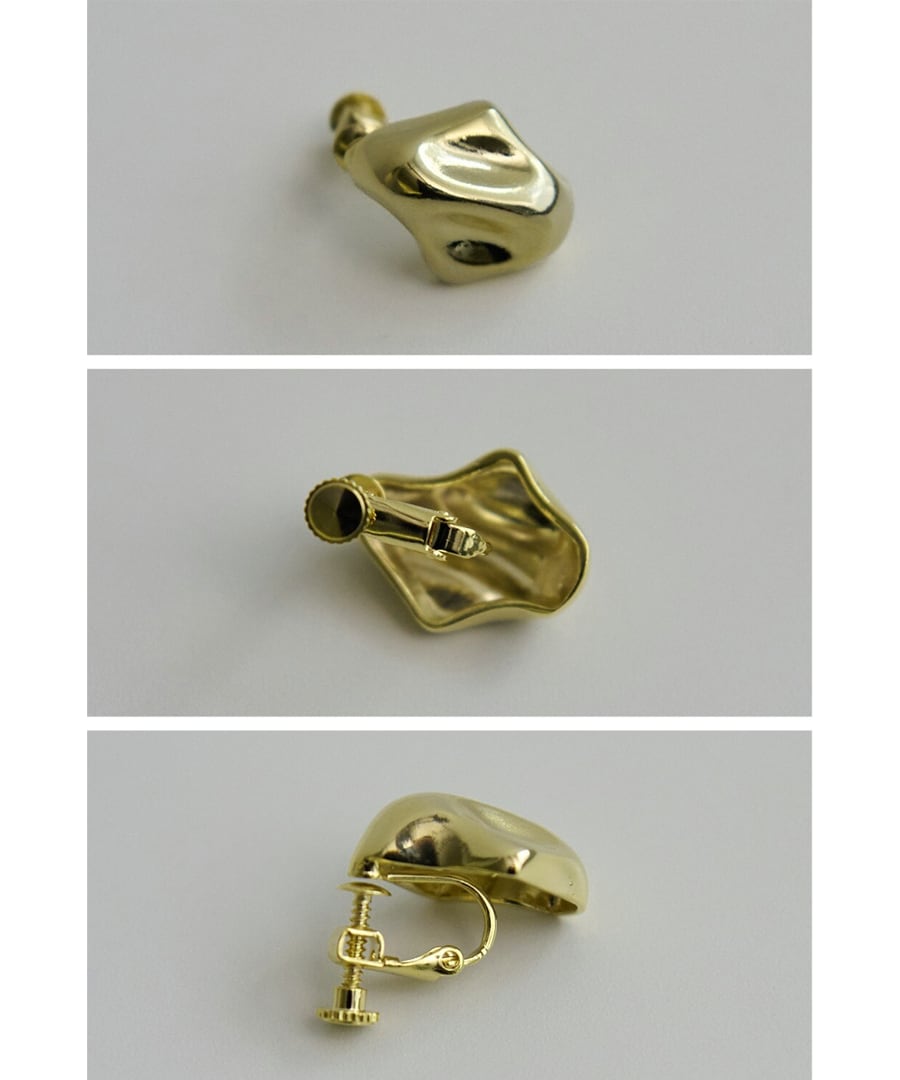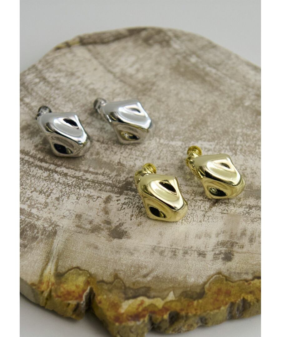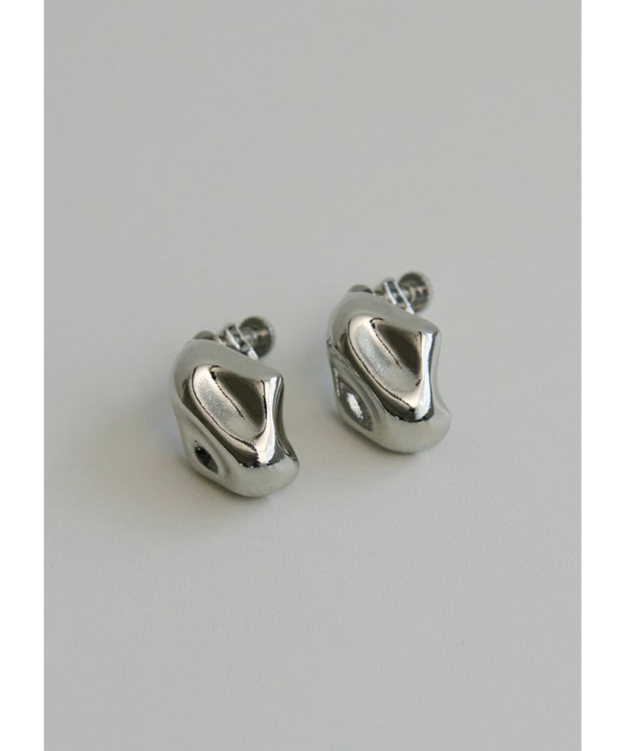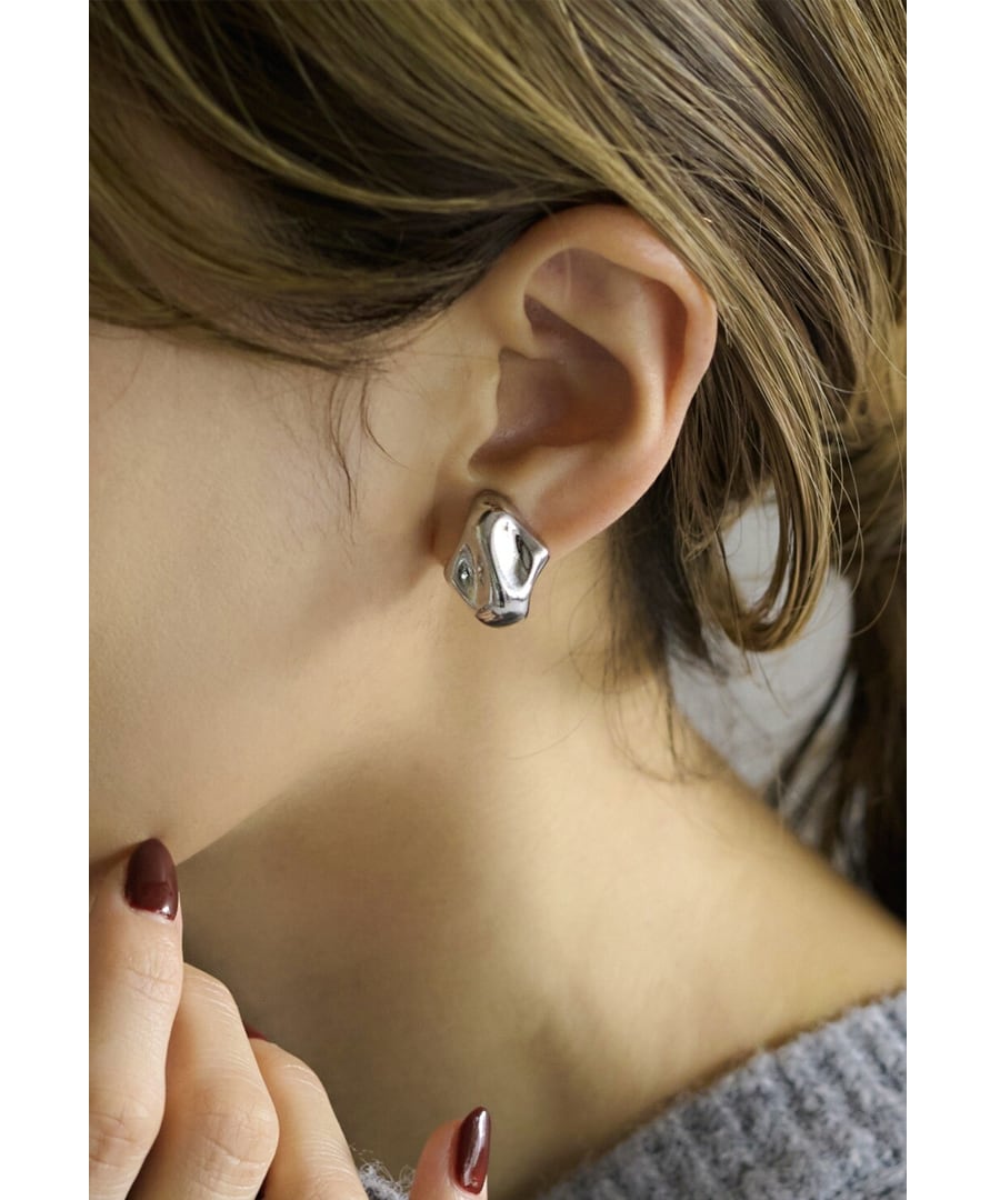 メタリックな光沢が際立つ、立体的なフォルムのイヤリング。