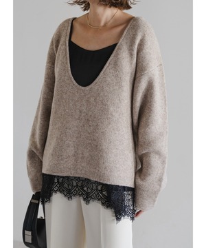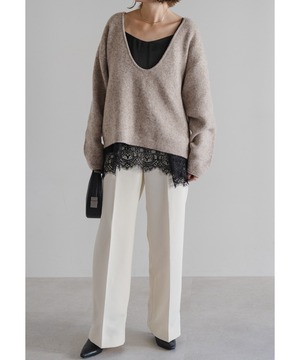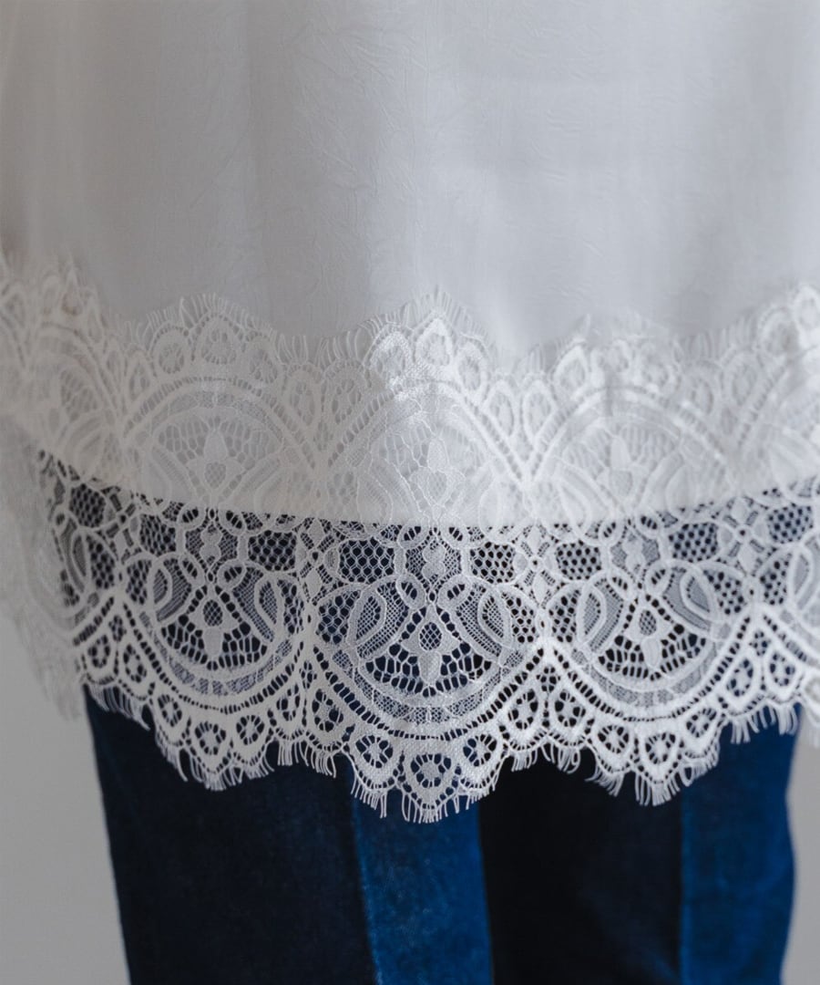 裾には存在感のあるスカラップレースをあしらい、甘さを抑えた大人っぽいバランスに仕上げました。