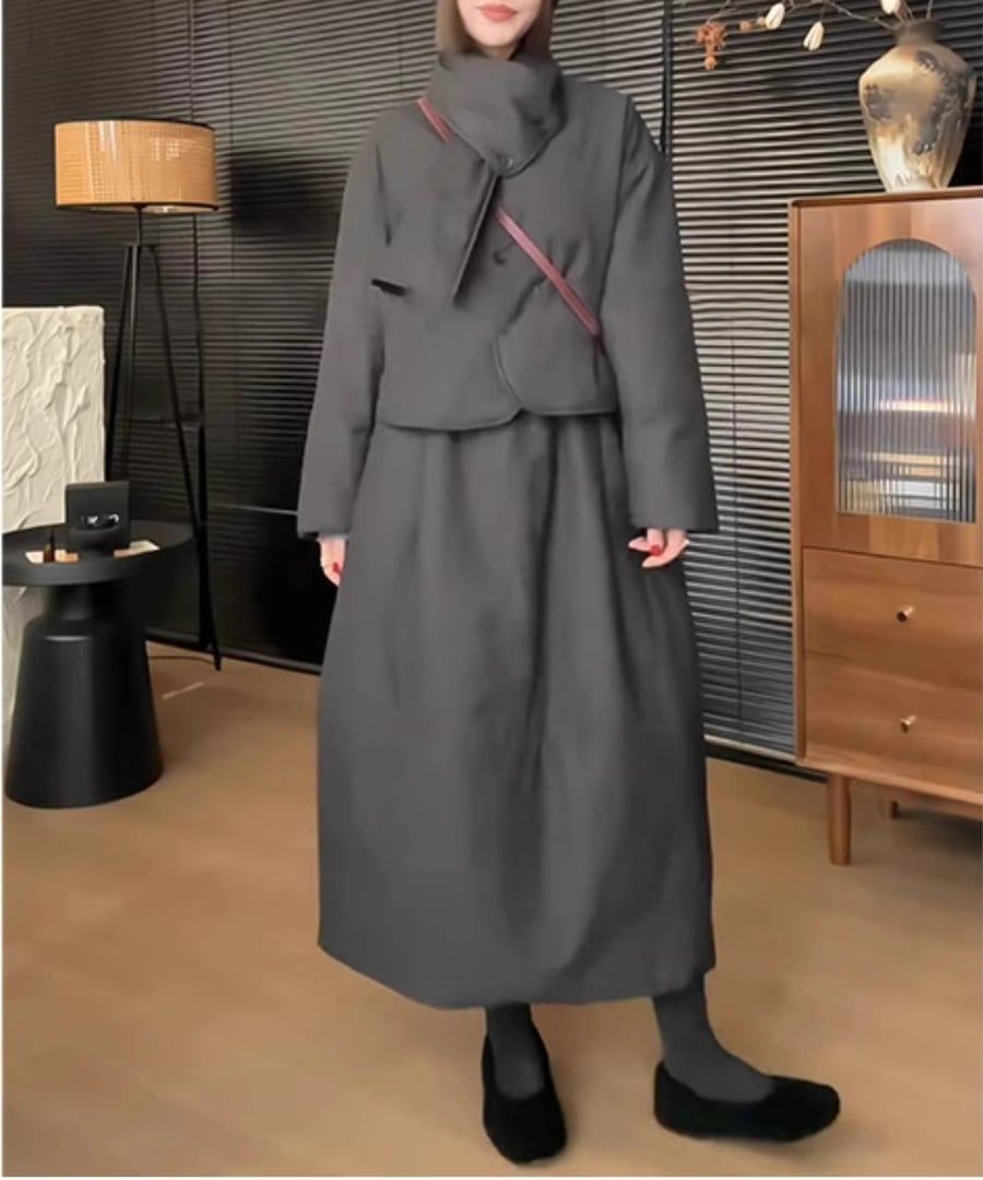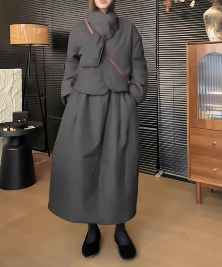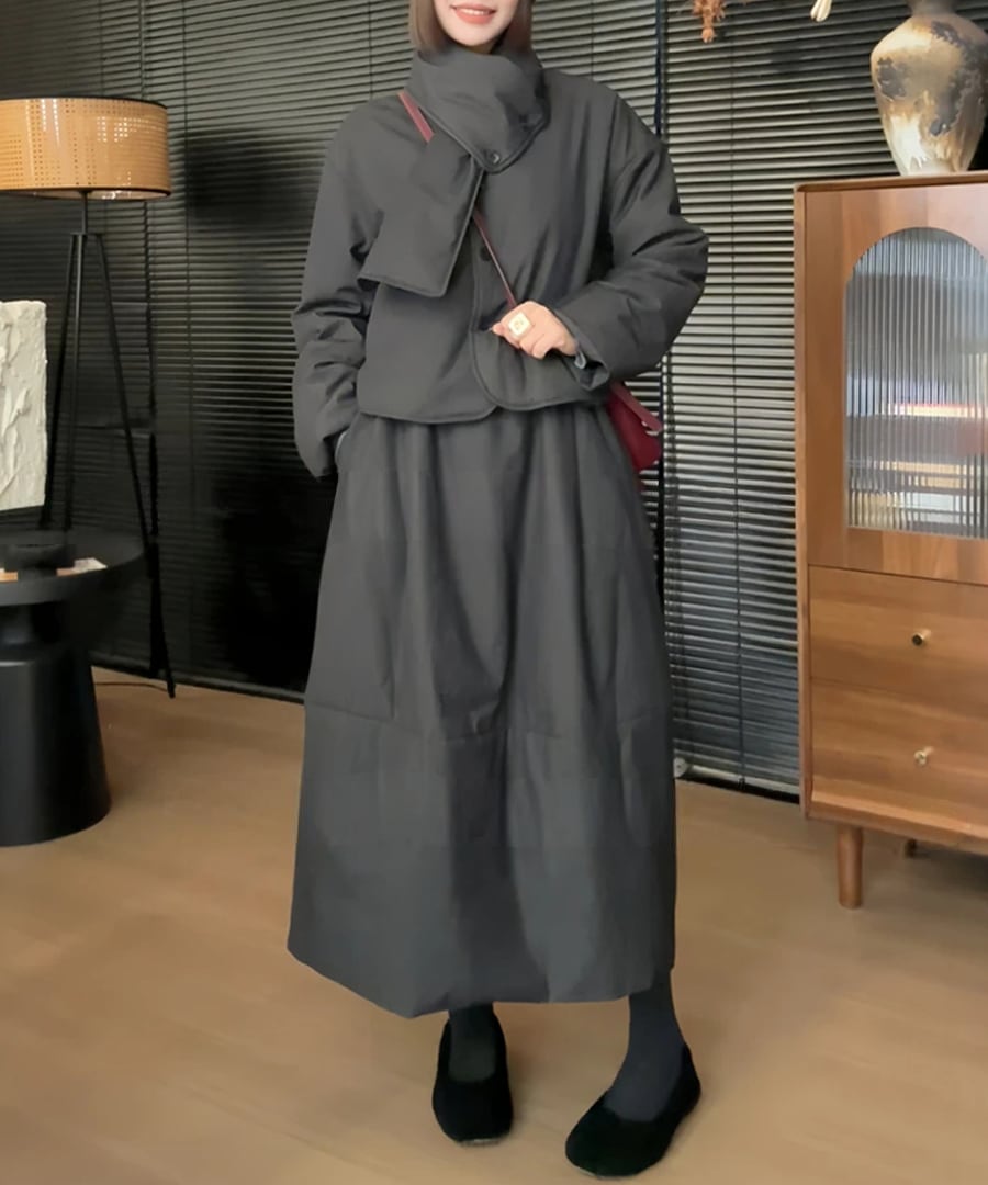 ダウンジャケット&スカート&スカーフ3点セット【s-40050】