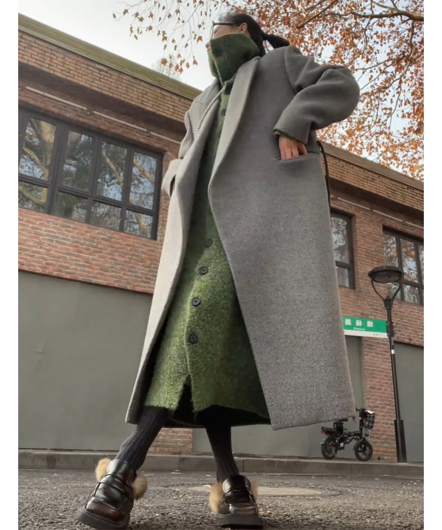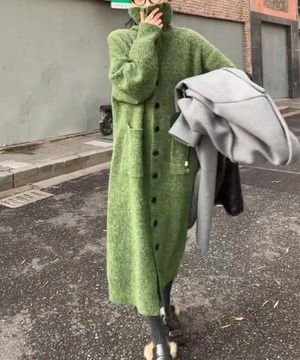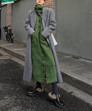 カーディガンとしても活用できる2wayスタイルは、ロングコートの下に重ね着するのにも最適。