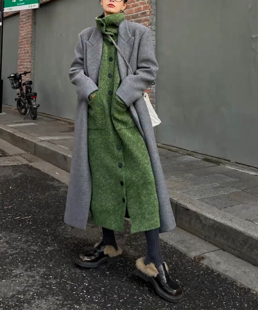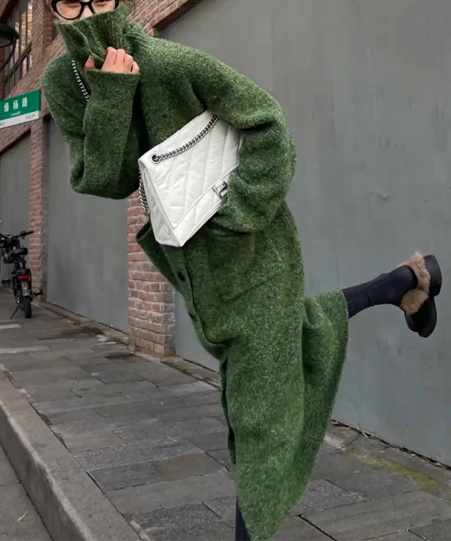 柔らかな素材で作られたgreenのニットワンピースは、リラックスした着心地とスタイリッシュなデザインを兼ね備えています。