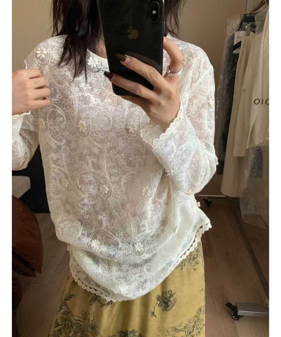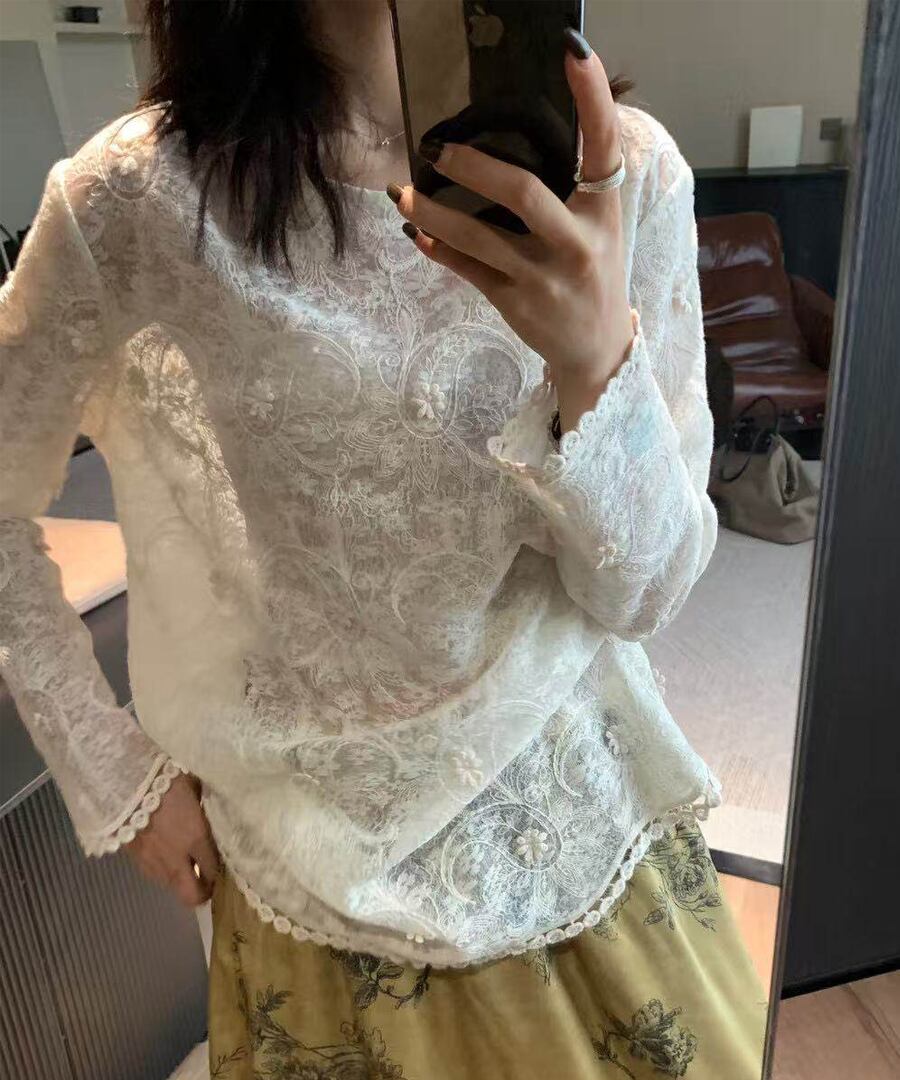 繊細◆ジャカードレースブラウス【t-10759】