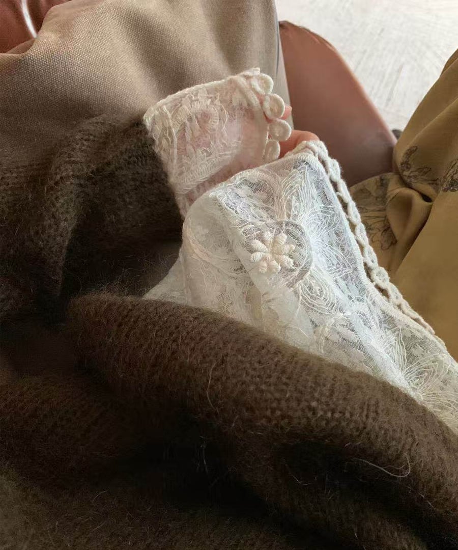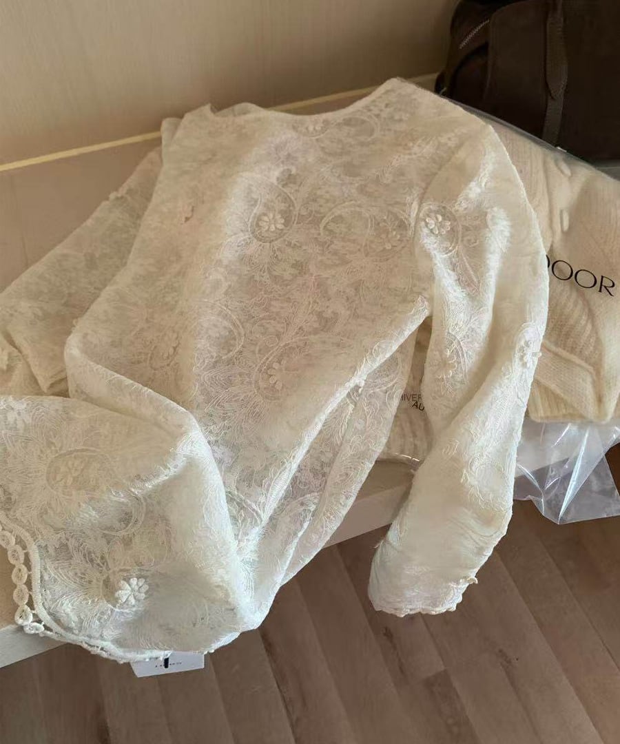 上品なジャカードレースが施されたブラウス。