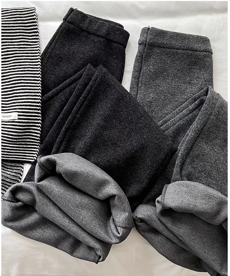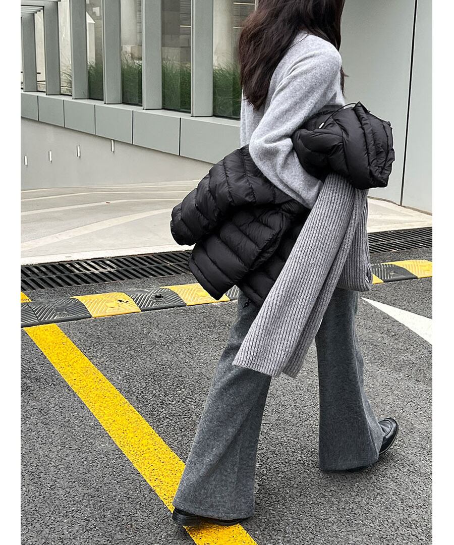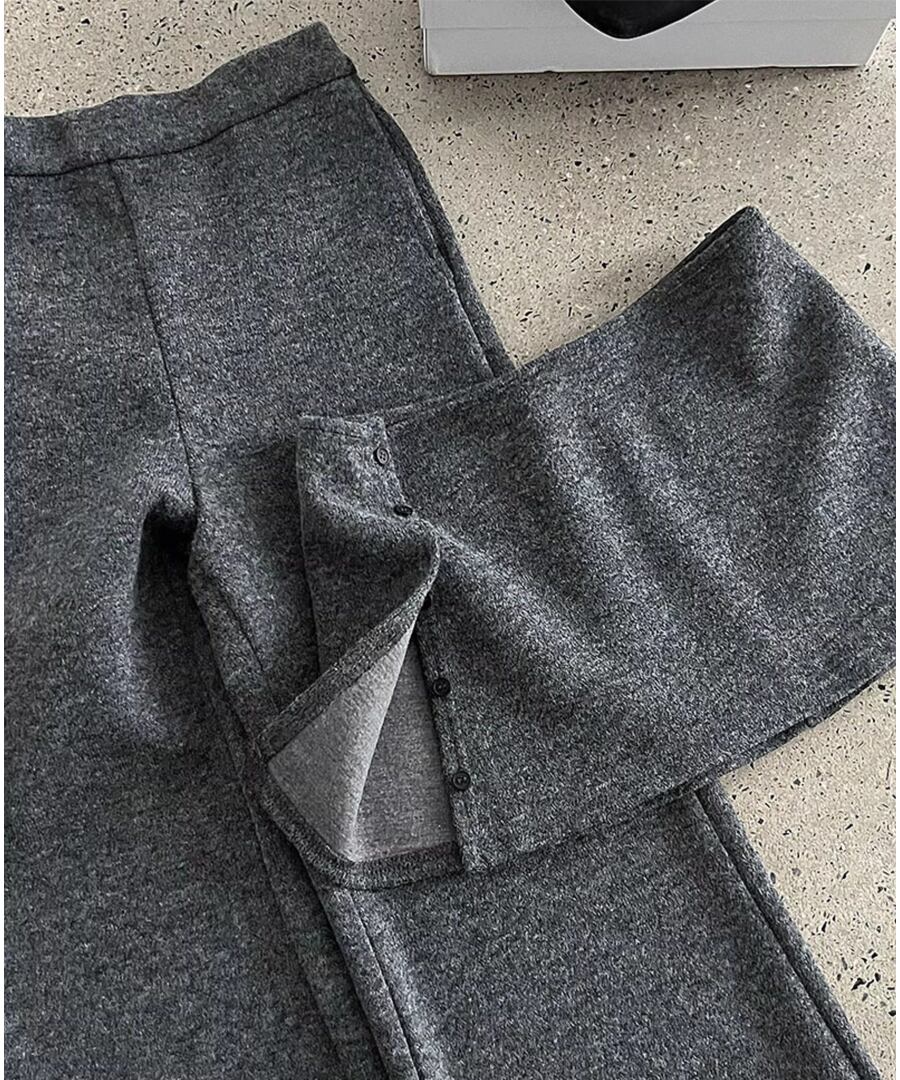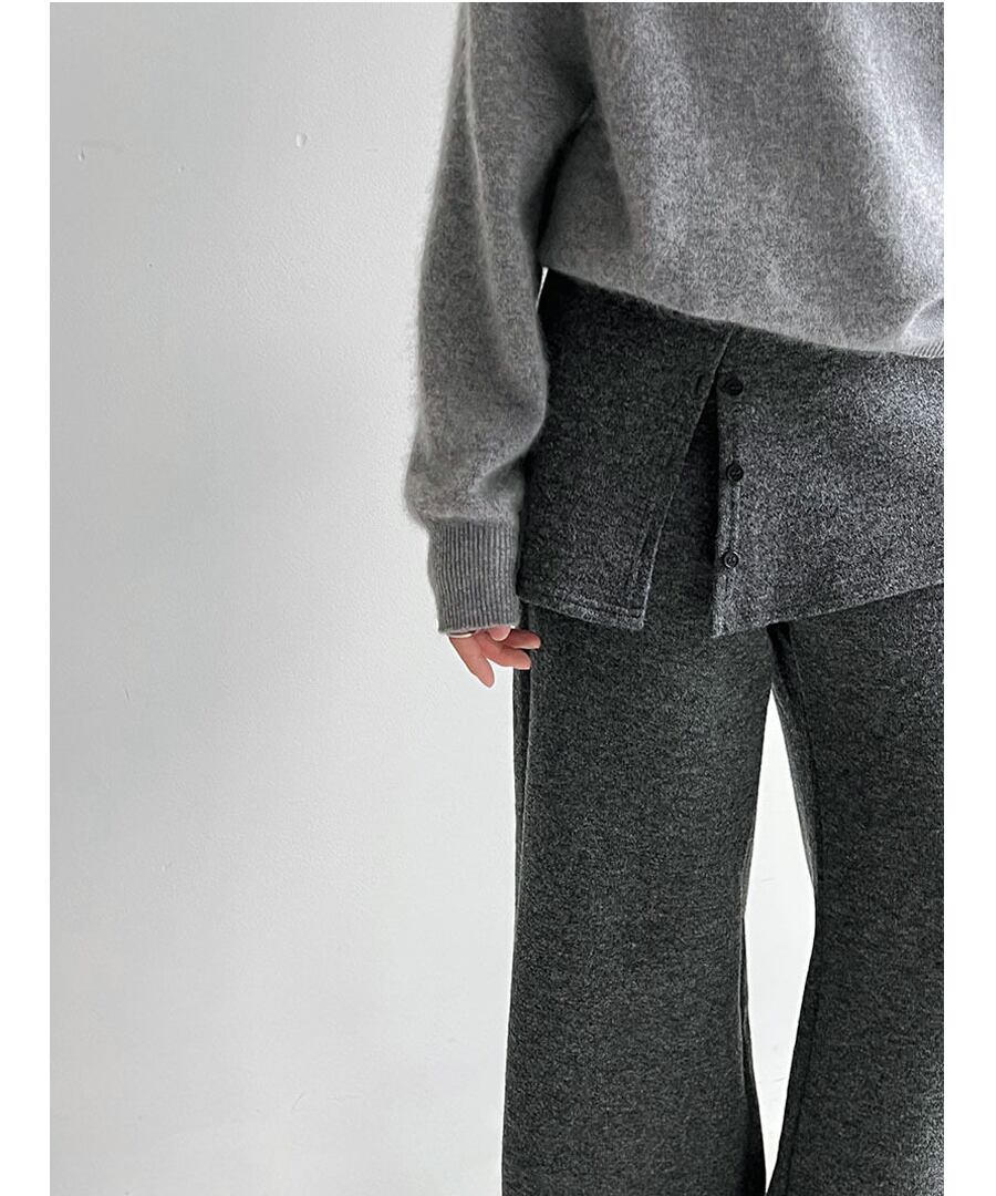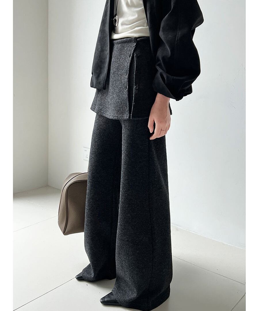 トレンド感満載のニットパンツに、スカートを重ねたようなリラックス感のあるセット。