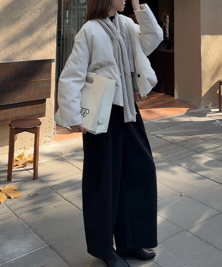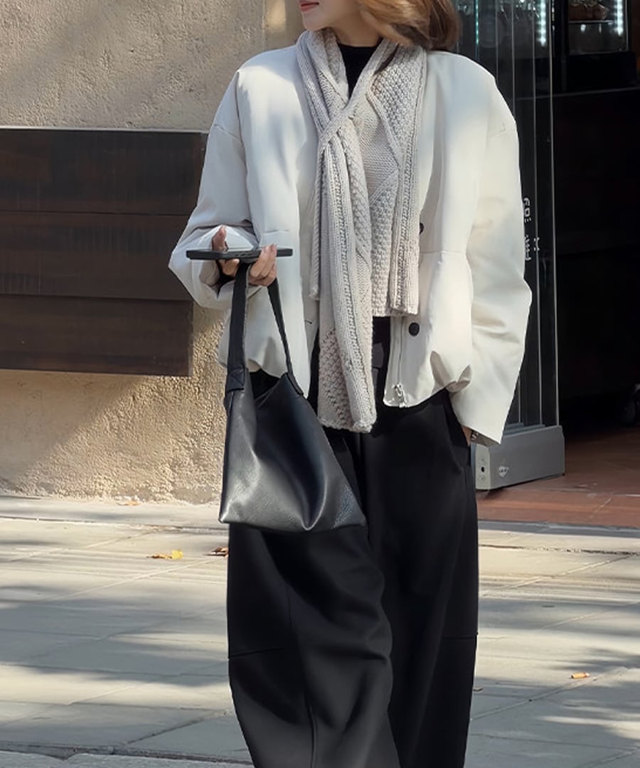 柔らかなニット素材が首元を優しく包み込み、冷たい風から守ってくれます。
