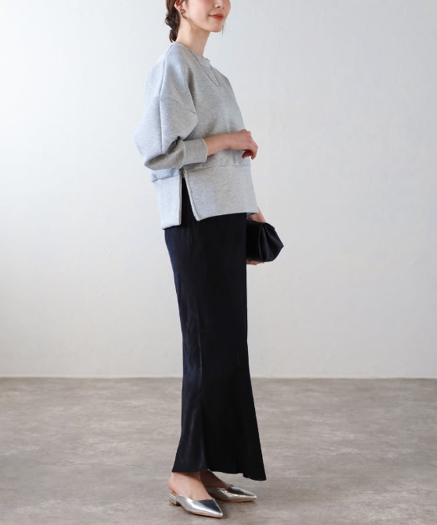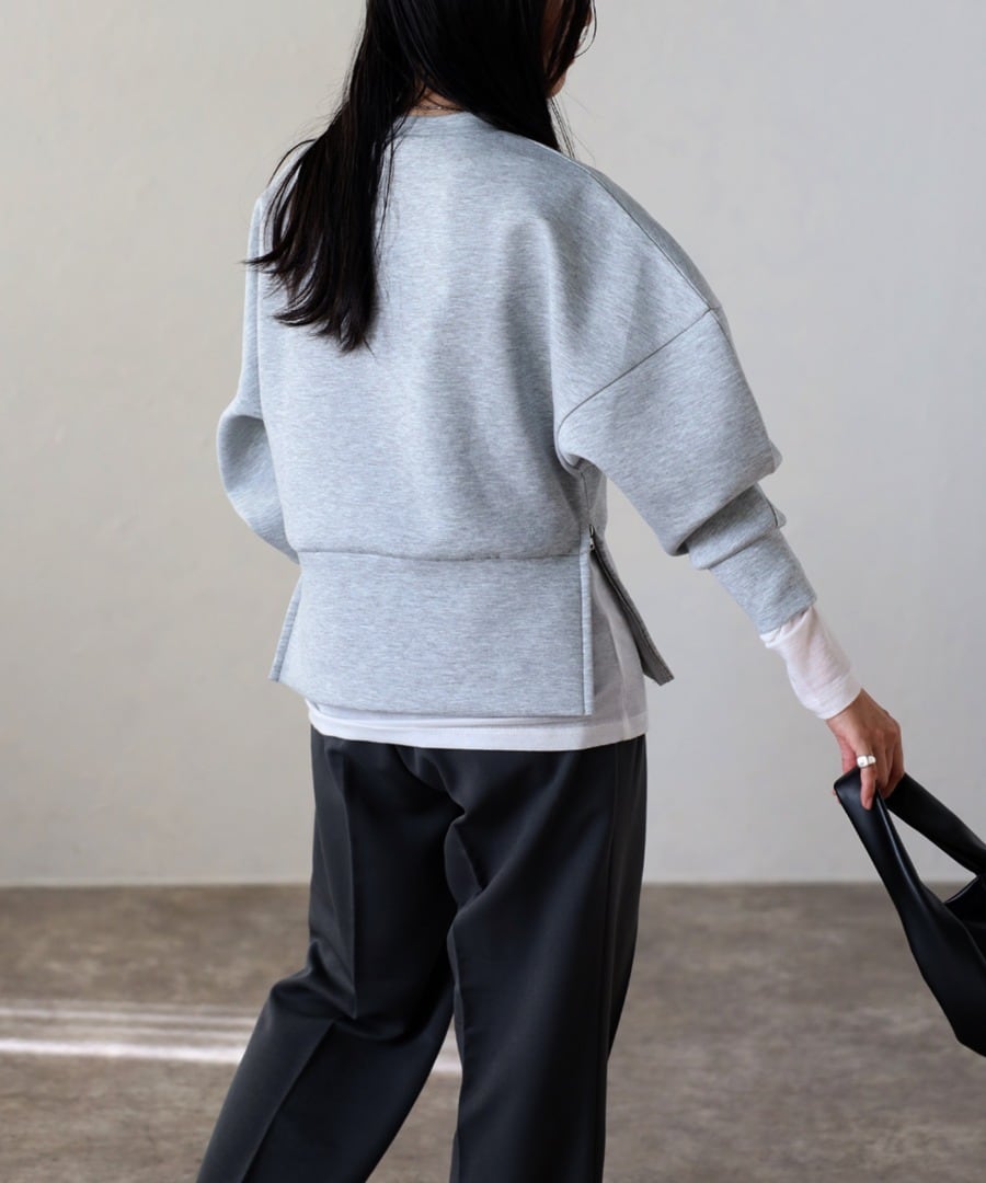 サイドに施したファスナーでスリット調整ができ、お好みのシルエットにアレンジいただけます。