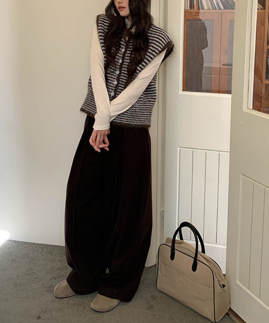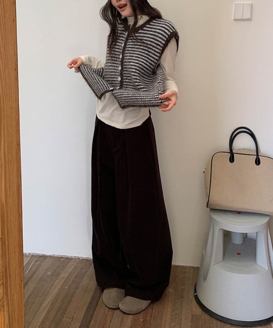 着回し抜群のアイテムで、Tシャツやシャツ、セーターとのレイヤードコーディネートが楽しめます。