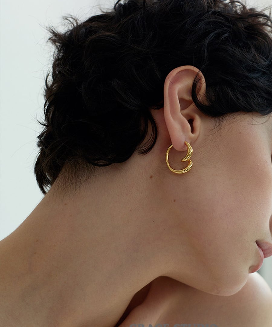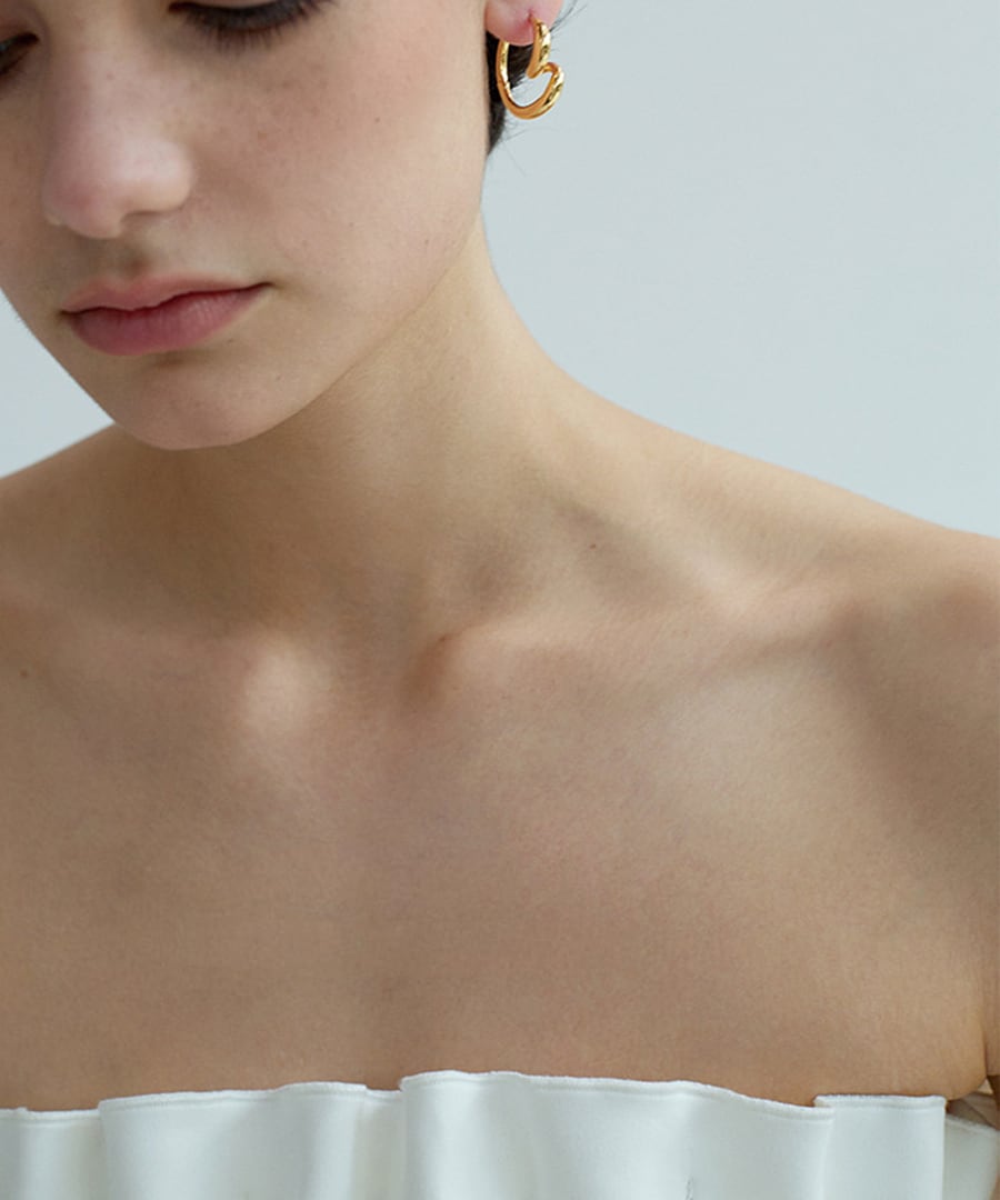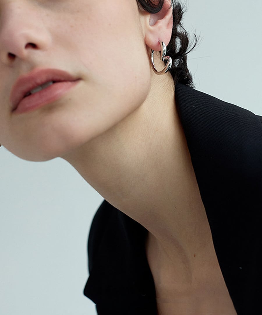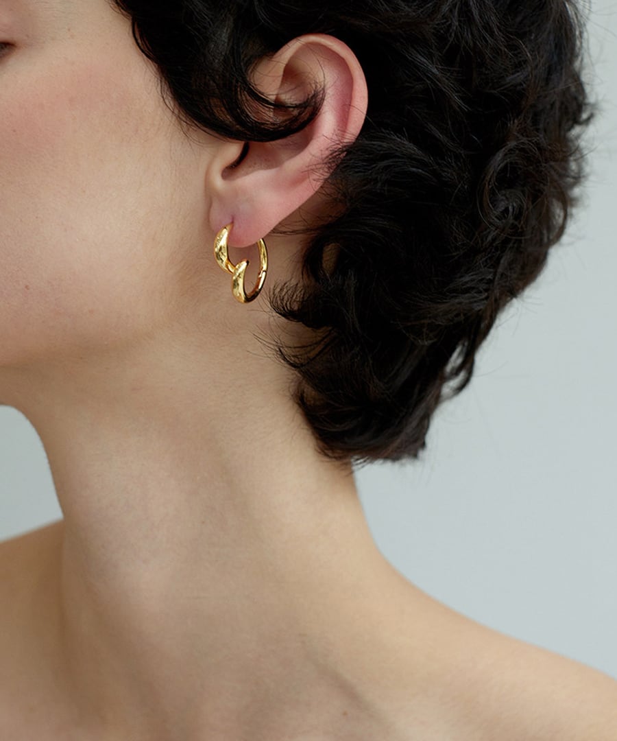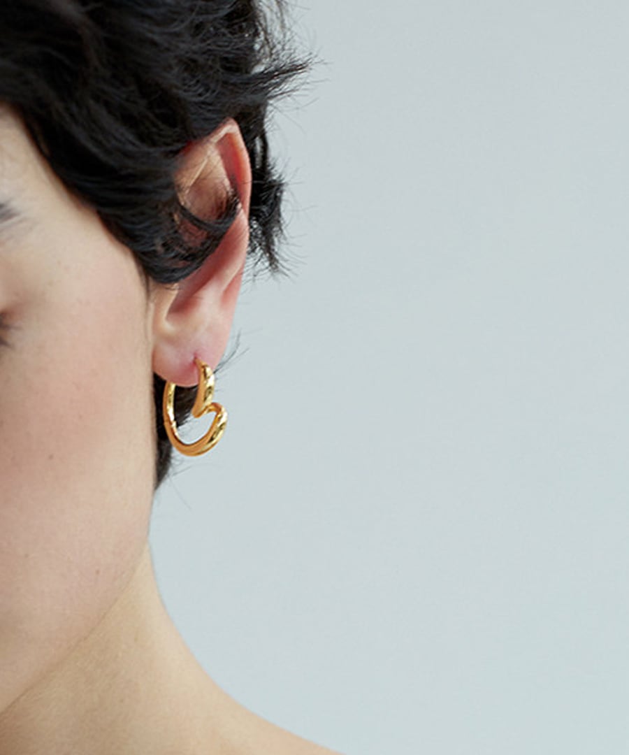 ハートをモチーフにしたデザインが愛らしく、さりげない存在感を演出するメタルフープピアス。