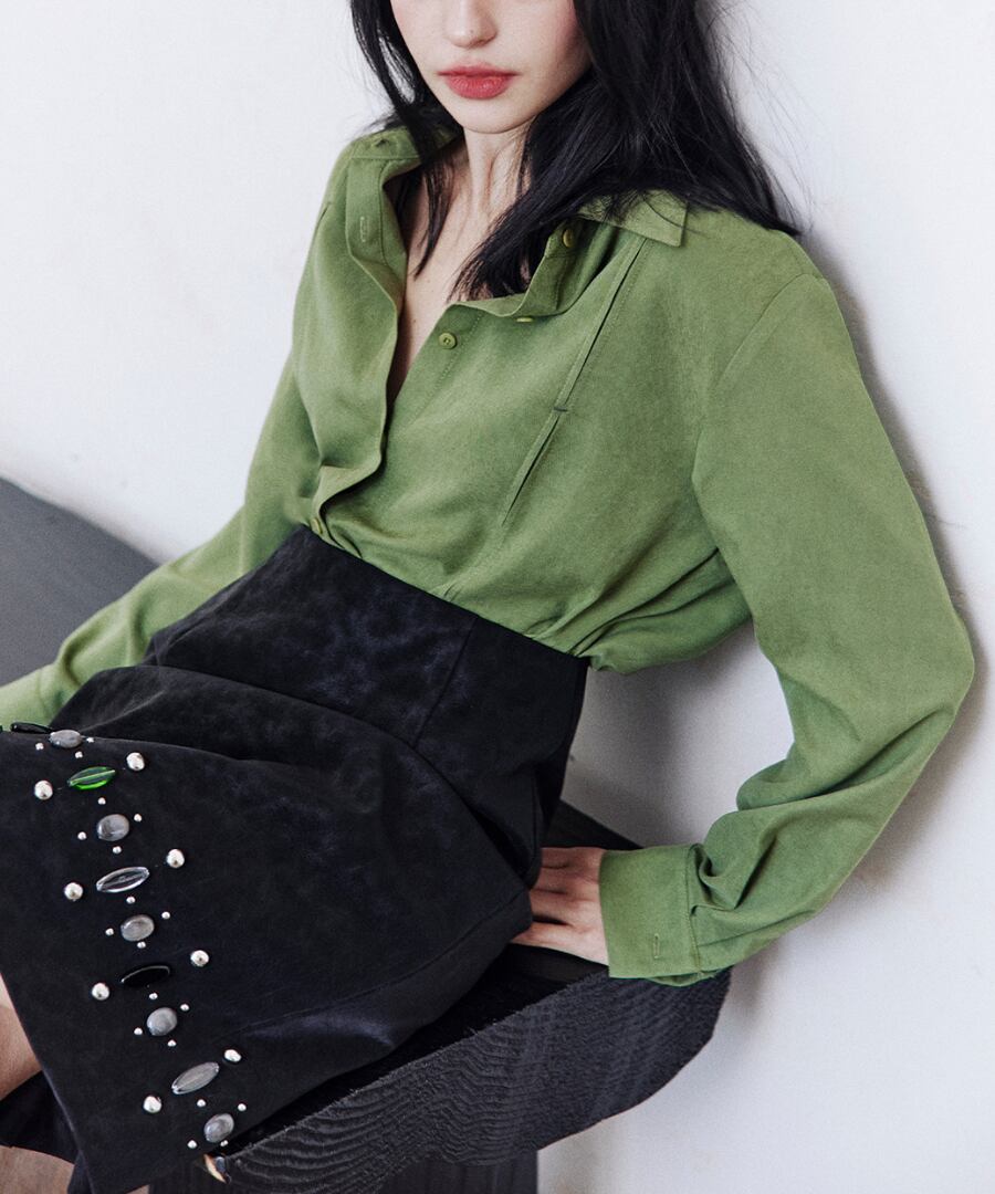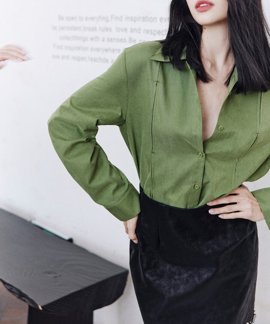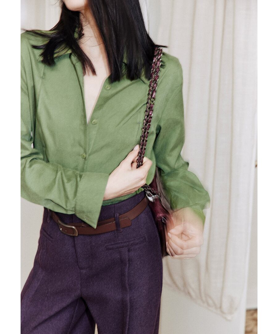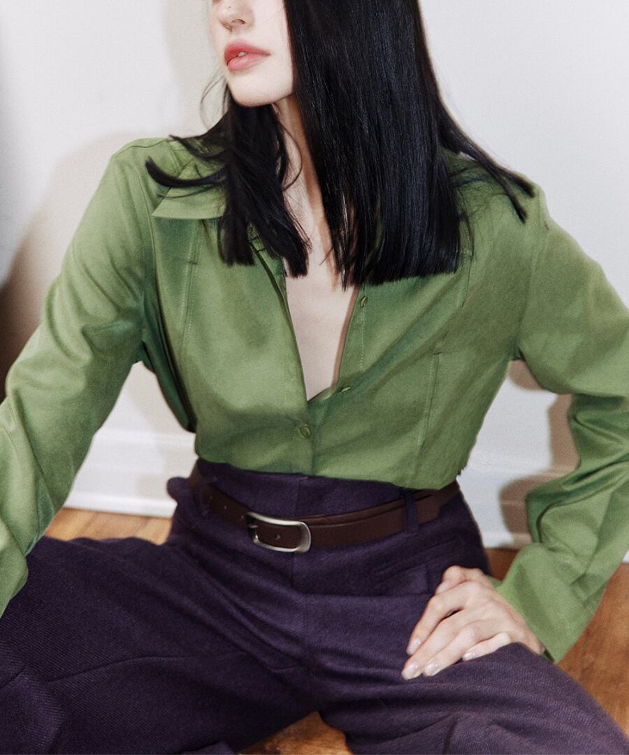上品なグリーンのシャツが、あなたのスタイルに洗練さをプラス。